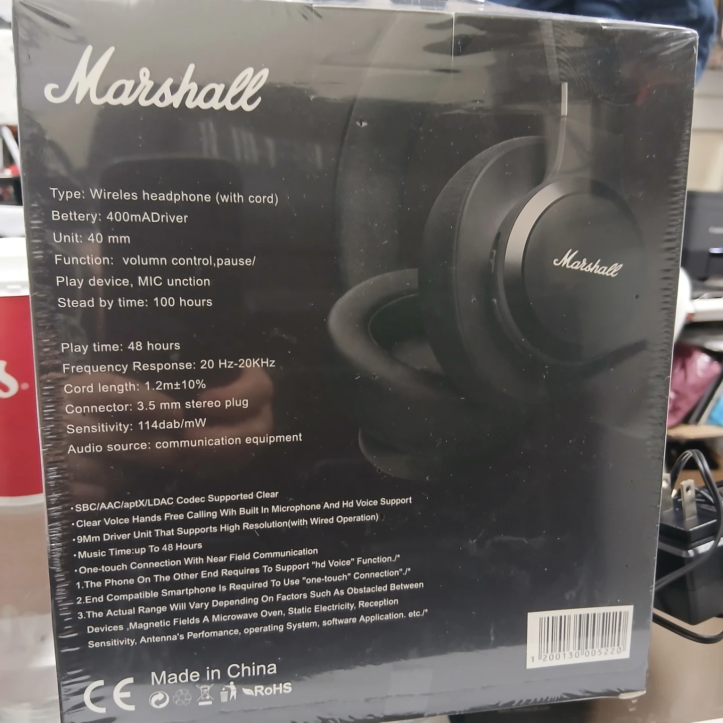 Selling a brand new pair of Marshall LIVE-770 A.N.C. wireless headphones! These headphones offer 48+ hours of wireless playtime and feature Bluetooth connectivity. The box includes clear voice hands-free calling with built-in microphone and HD voice support, a 9mm driver unit that supports high resolution (with wired operation), and music time up to 48 hours. The headphones also have one-touch connection with Near Field Communication