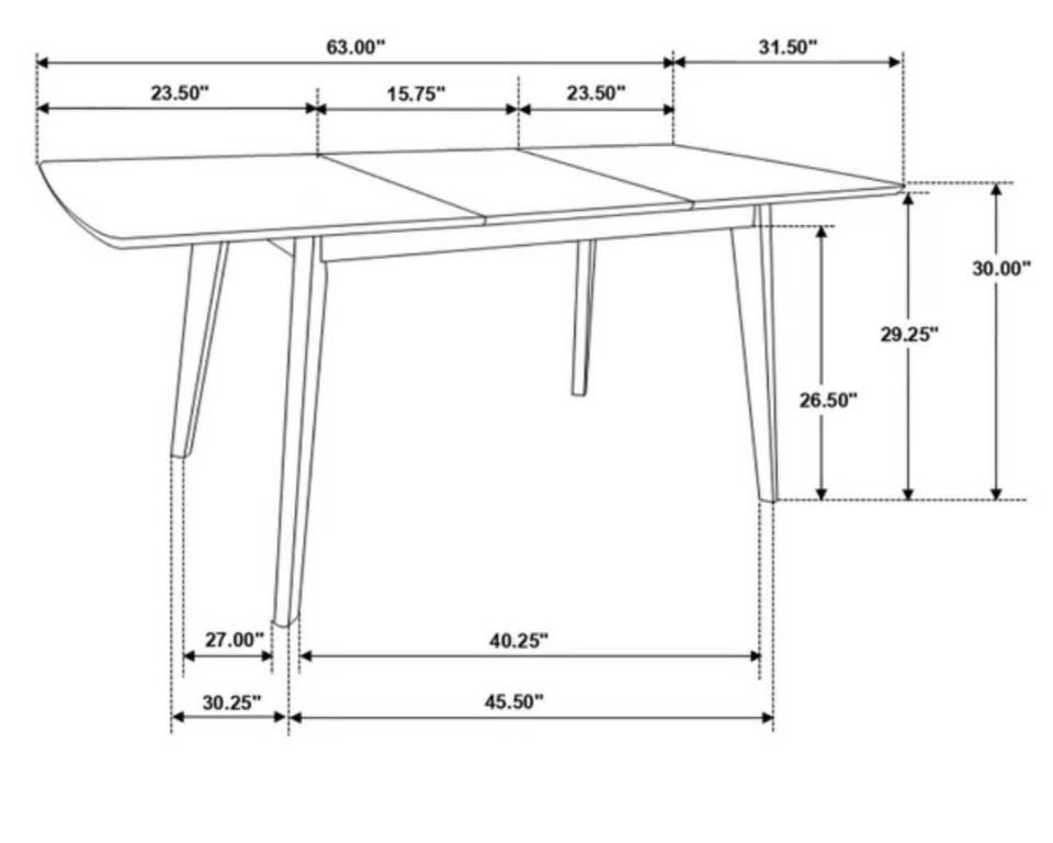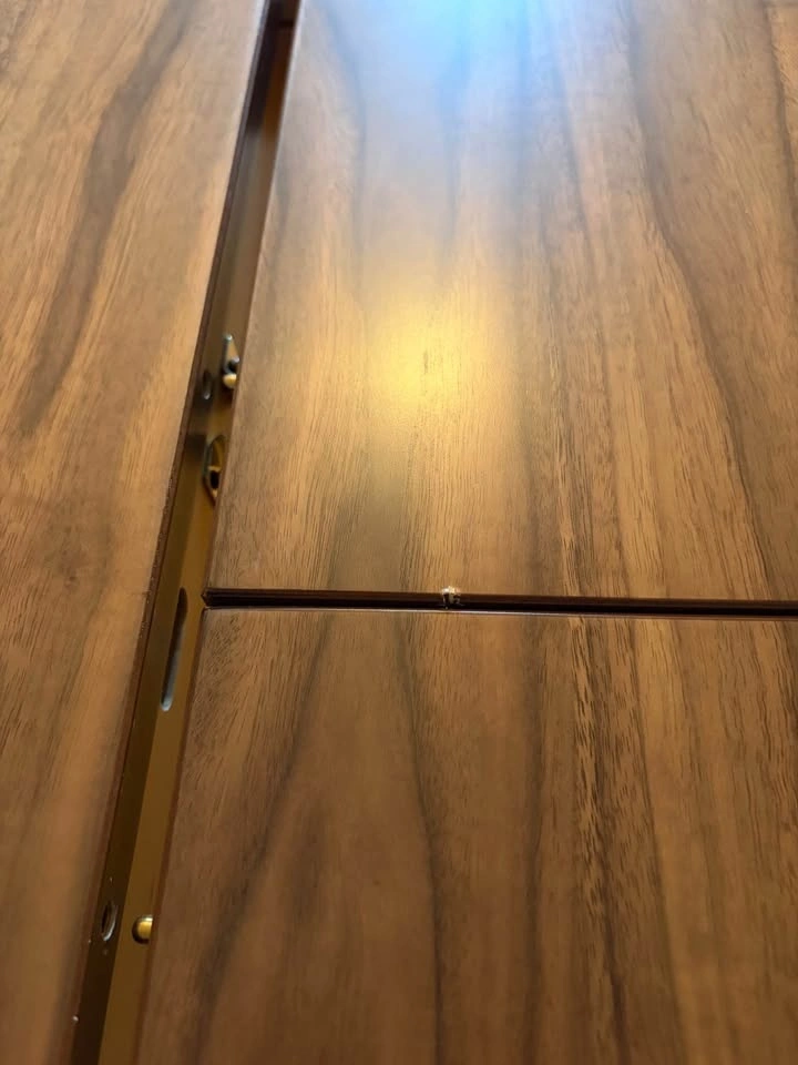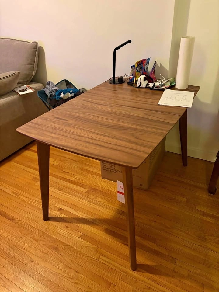 Brand new extendable dining table fitting 4-6 people. Midcentury modern style. It's basically unused, delivered with a slight nick on the extendable leaf part which is why we're selling. The leaf folds underneath table and there’s a nice locking mechanism. We will also take the legs off for easier transport if needed!