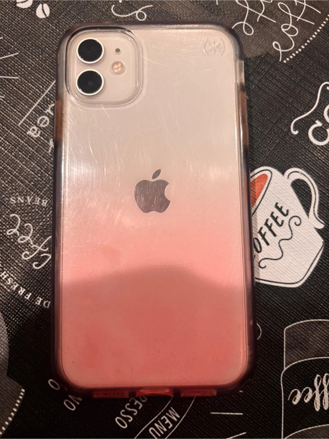 Selling an Apple iPhone 11 in white with 64GB of storage. It comes with its original box. There are some scratches on the back.