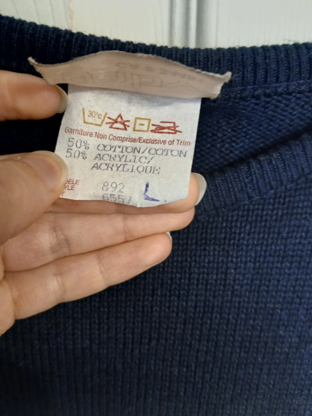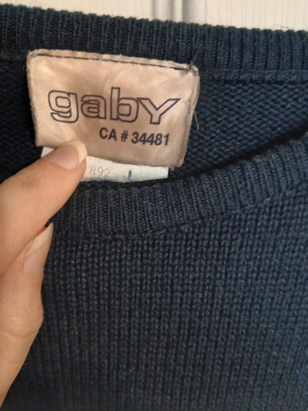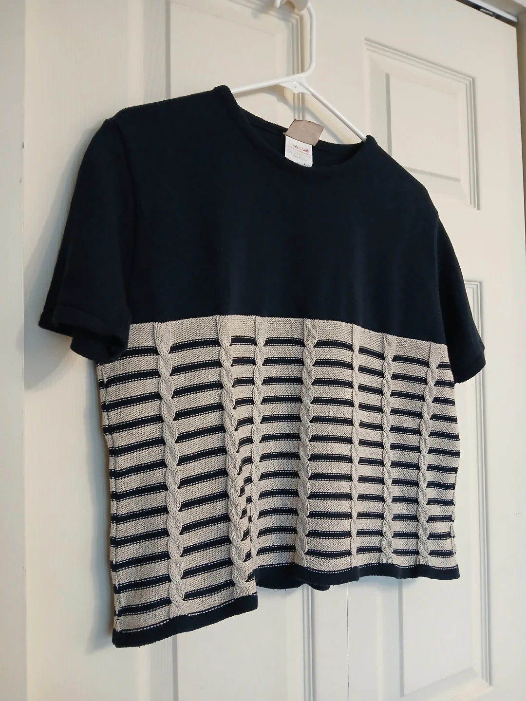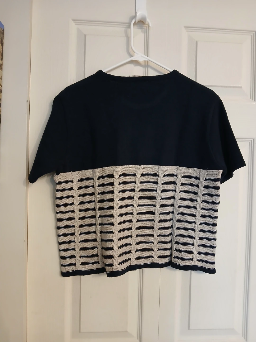 Gaby vintage knit navy blue and cream shortsleeve, L