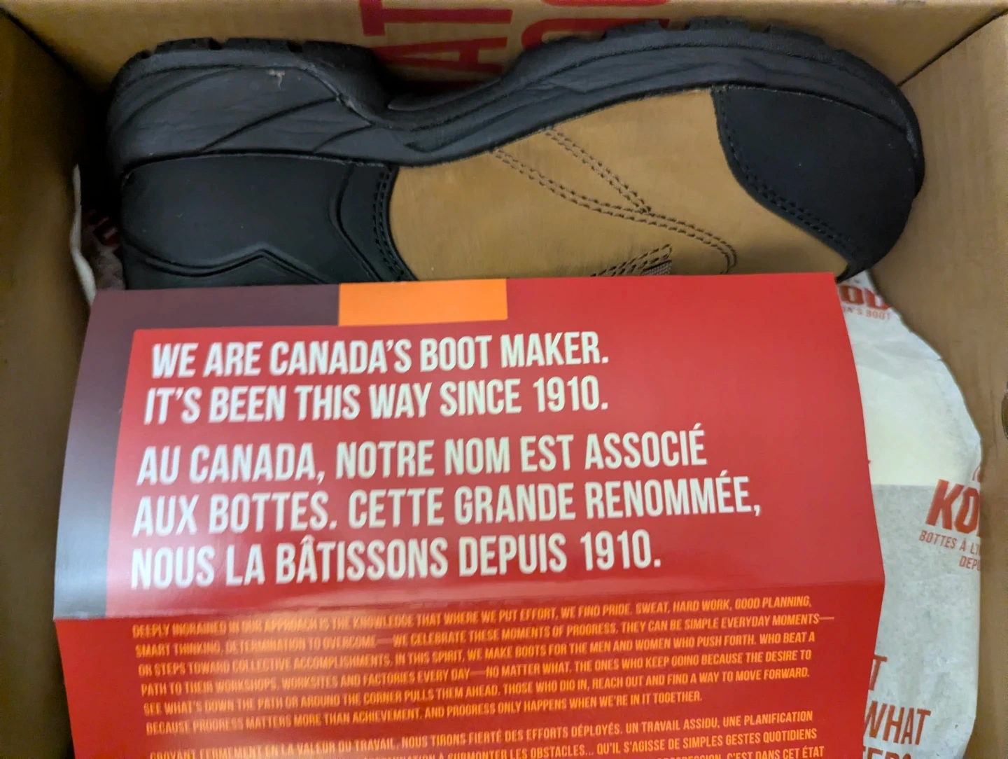 Kodiak Journey CT WP ESR CSA boots, size 8.5. These boots are composite safety toe, waterproof, electric shock resistant, puncture resistant and slip resistant. They are brown in colour and come in the original box