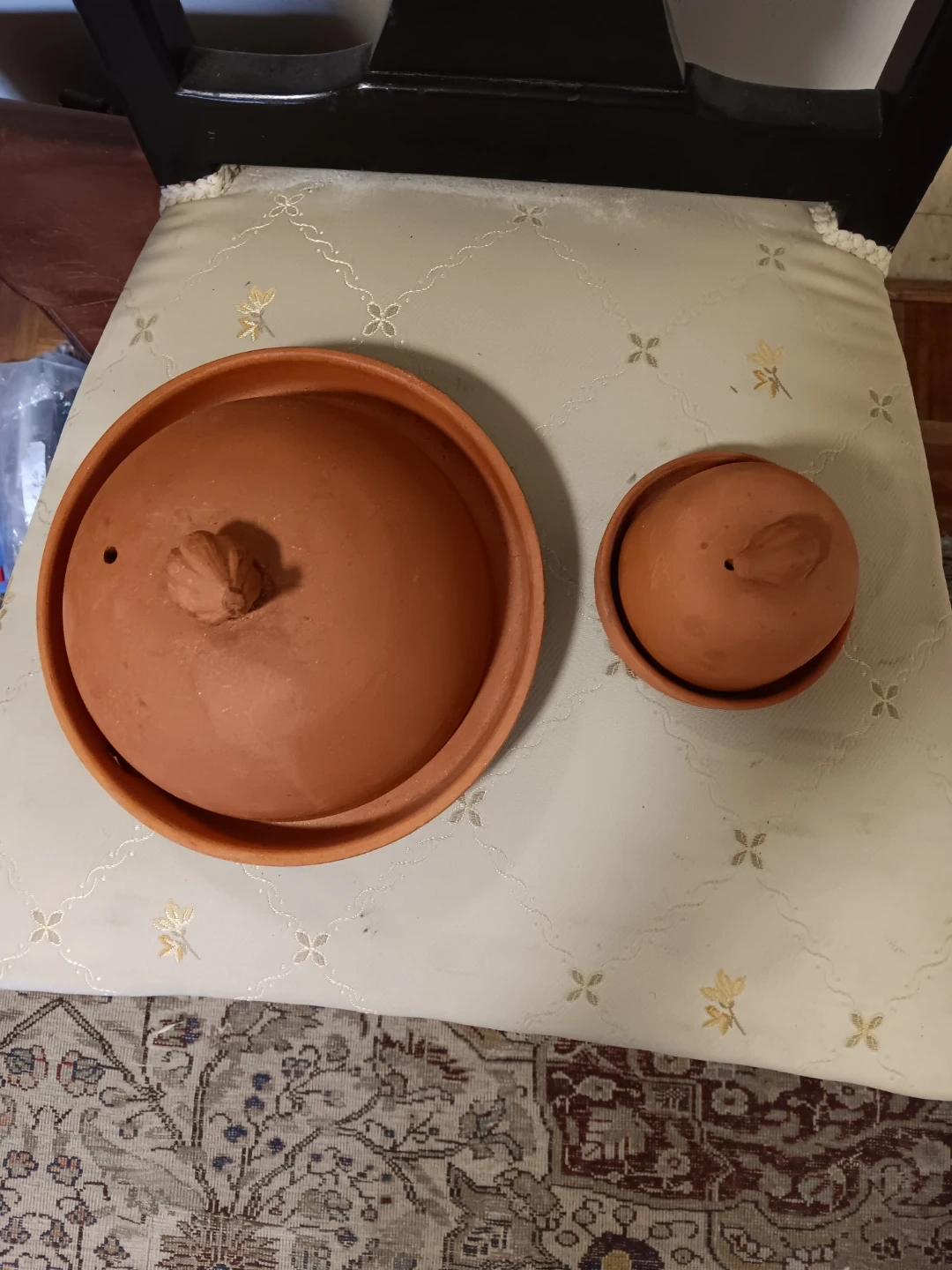 Selling a set of two garlic terracotta roasting containers. They come in two different sizes, perfect for roasting garlic and adding a rustic touch to your kitchen.