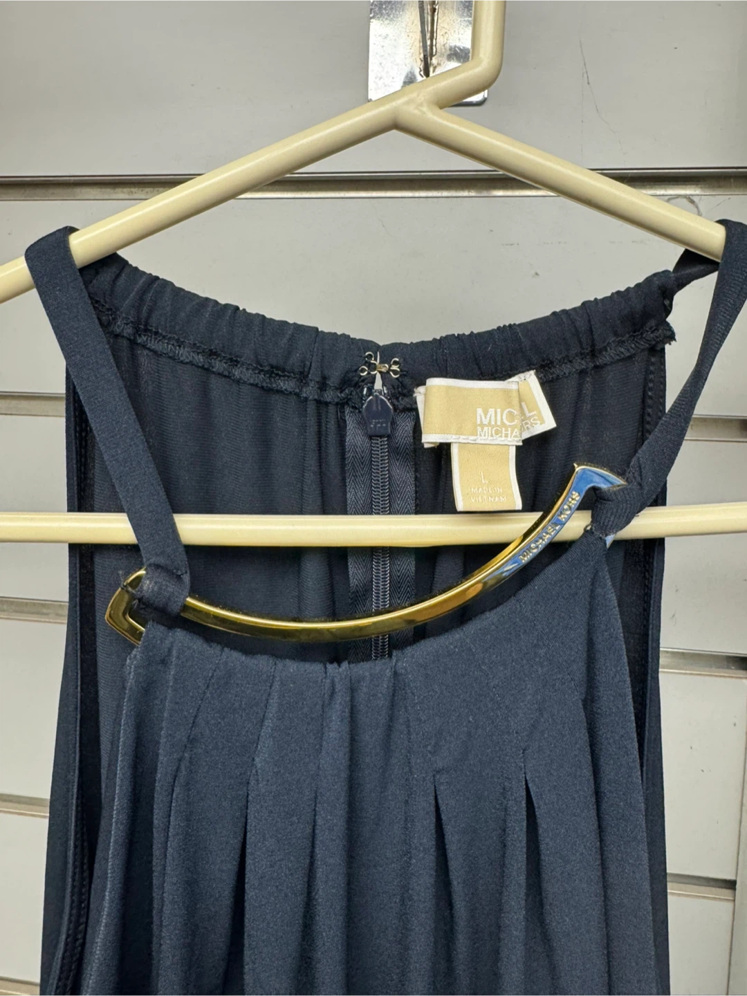 Selling a stylish Navy Michael Kors dress in size L. This dress features a unique gold-tone detail at the neckline, adding a touch of elegance. It's perfect for various occasions and is in great condition!
