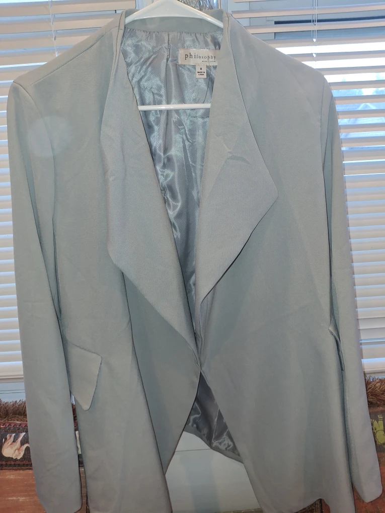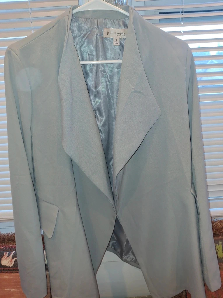 Selling a beautiful Philosophy Republic Clothing blazer in size 8! The blazer is a lovely light blue color and is in great condition. Perfect for adding a touch of elegance to any outfit!