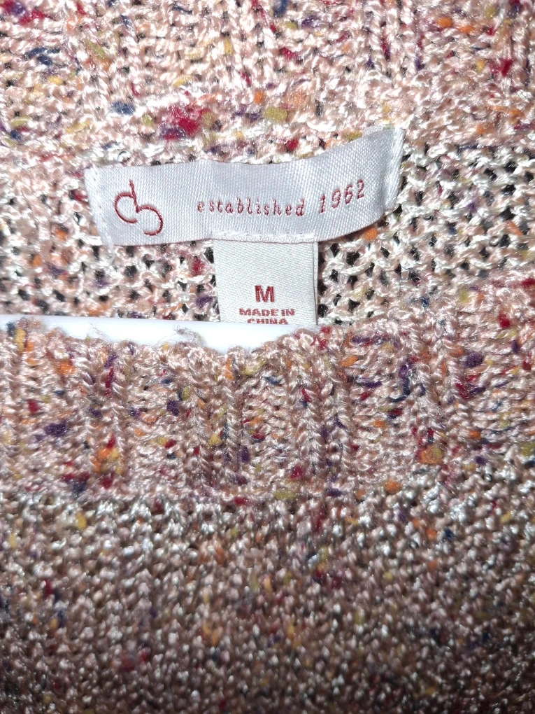 Here's a CB Established 1962 sweater in size medium! It has a unique knit texture with various colors woven in, giving it a cozy and stylish look. Perfect for adding a touch of warmth and flair to your wardrobe