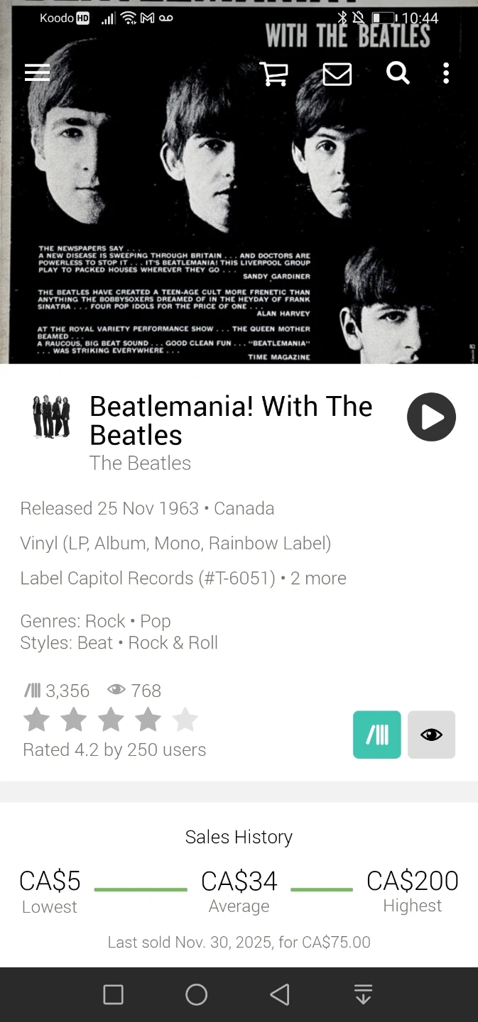 Selling my mono 1963 copy of Beatlemania. It's an original pressing on the rainbow style label. And a few pops and general noise aside (and not very much of it either) it's actually in relitivly good condition.