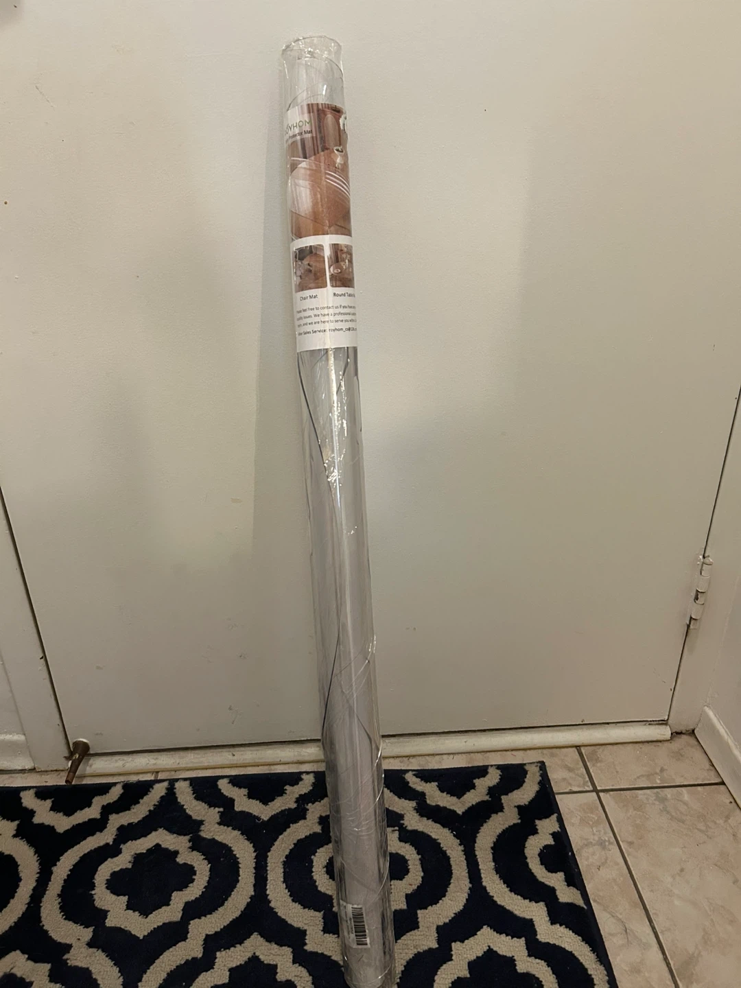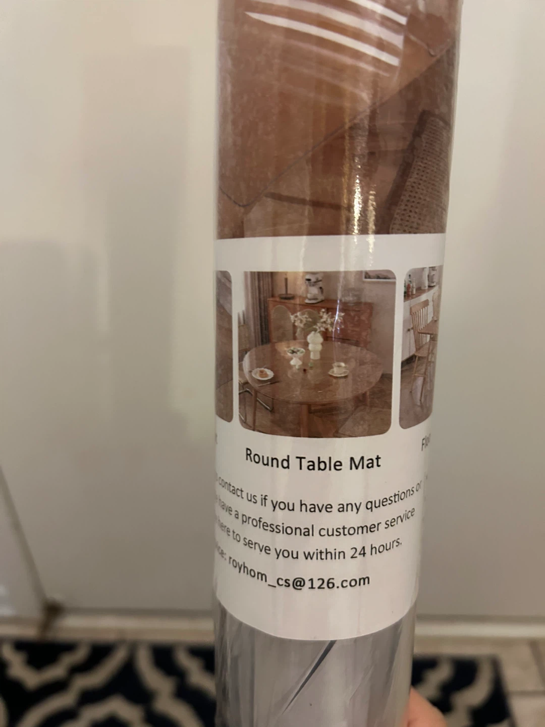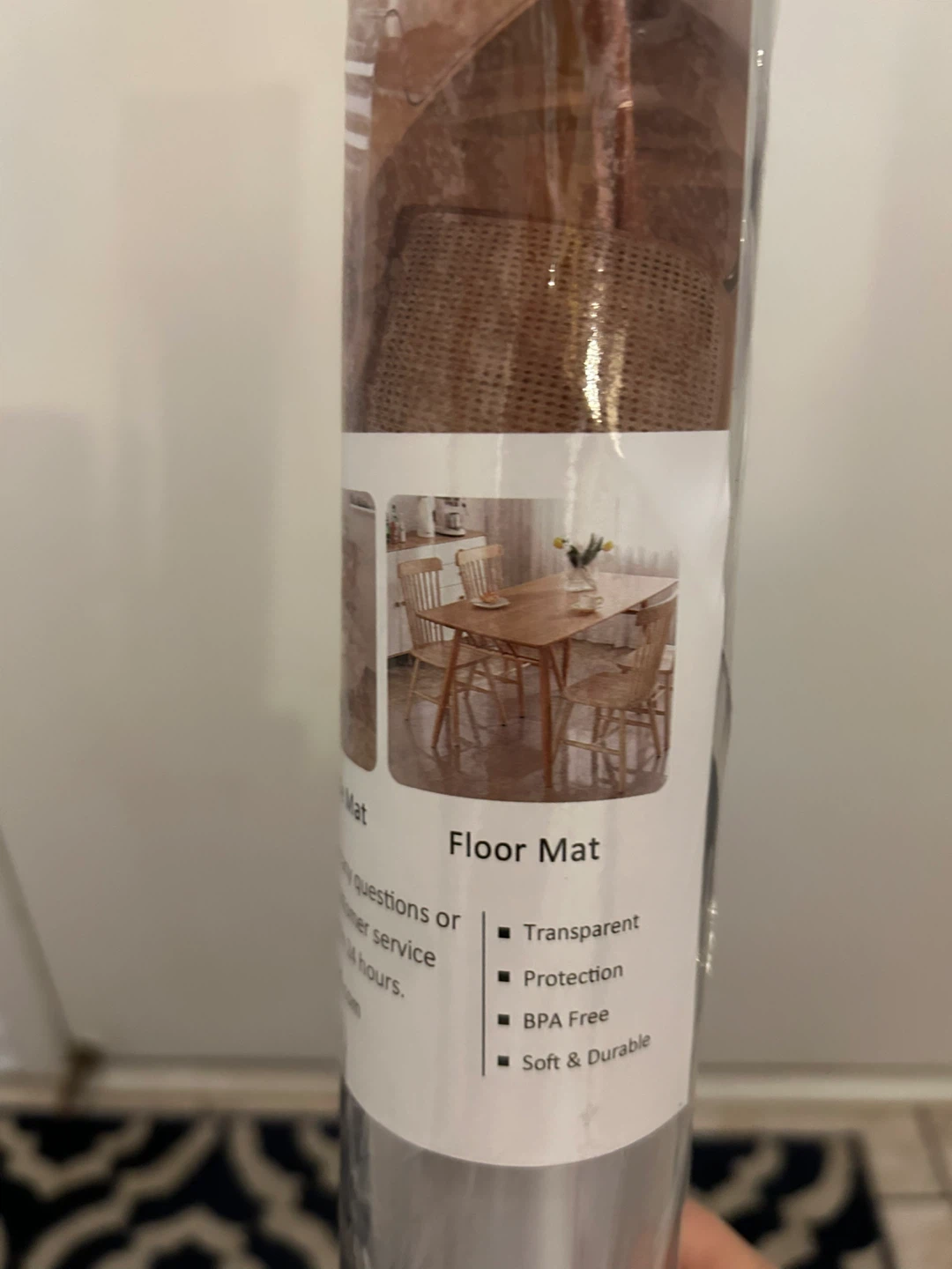 I'm selling a round table mat! It's transparent, BPA free, soft, and durable. It can also be used as a floor or chair mat!