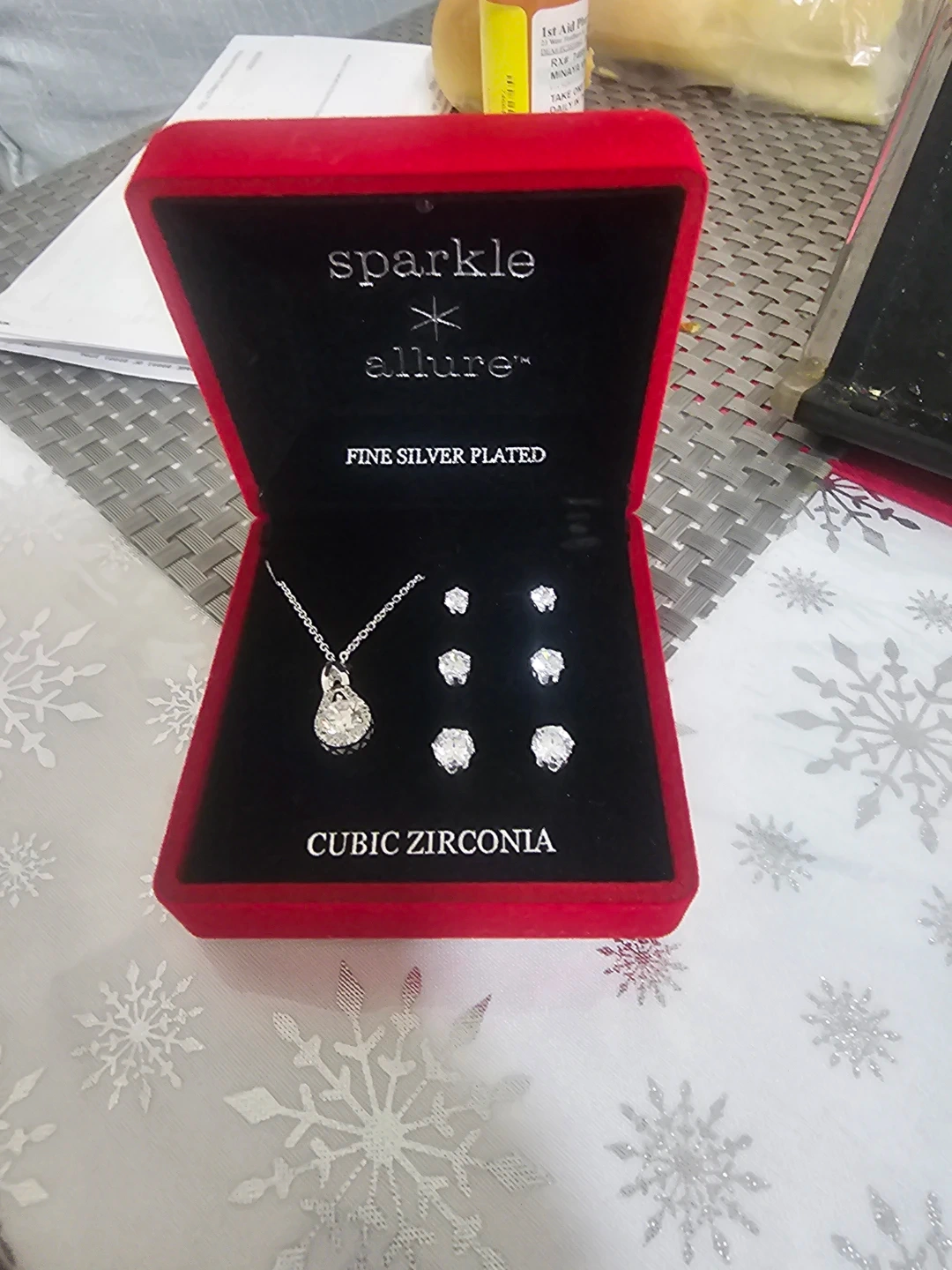 Sparkle Allure necklace and earrings set. This set is fine silver plated and features cubic zirconia. Comes in the original box!