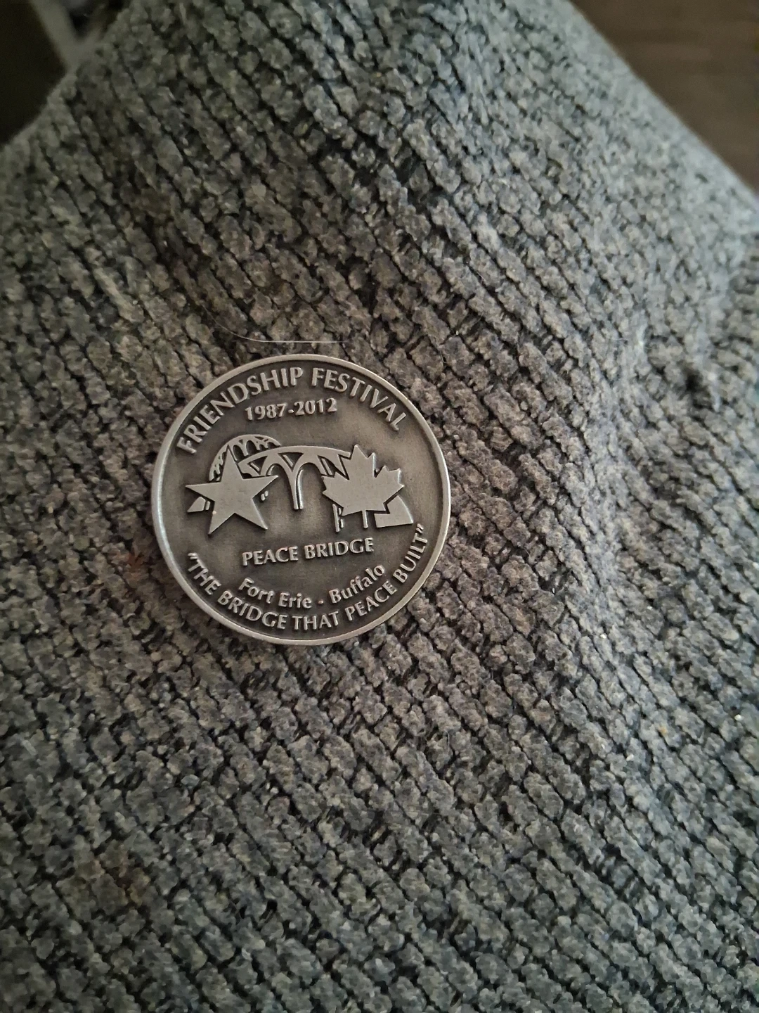 Selling a Niagara 1812 Fort Erie coin. It commemorates the Friendship Festival from 1987-2012 and features the Peace Bridge between Fort Erie and Buffalo. A neat piece of history!