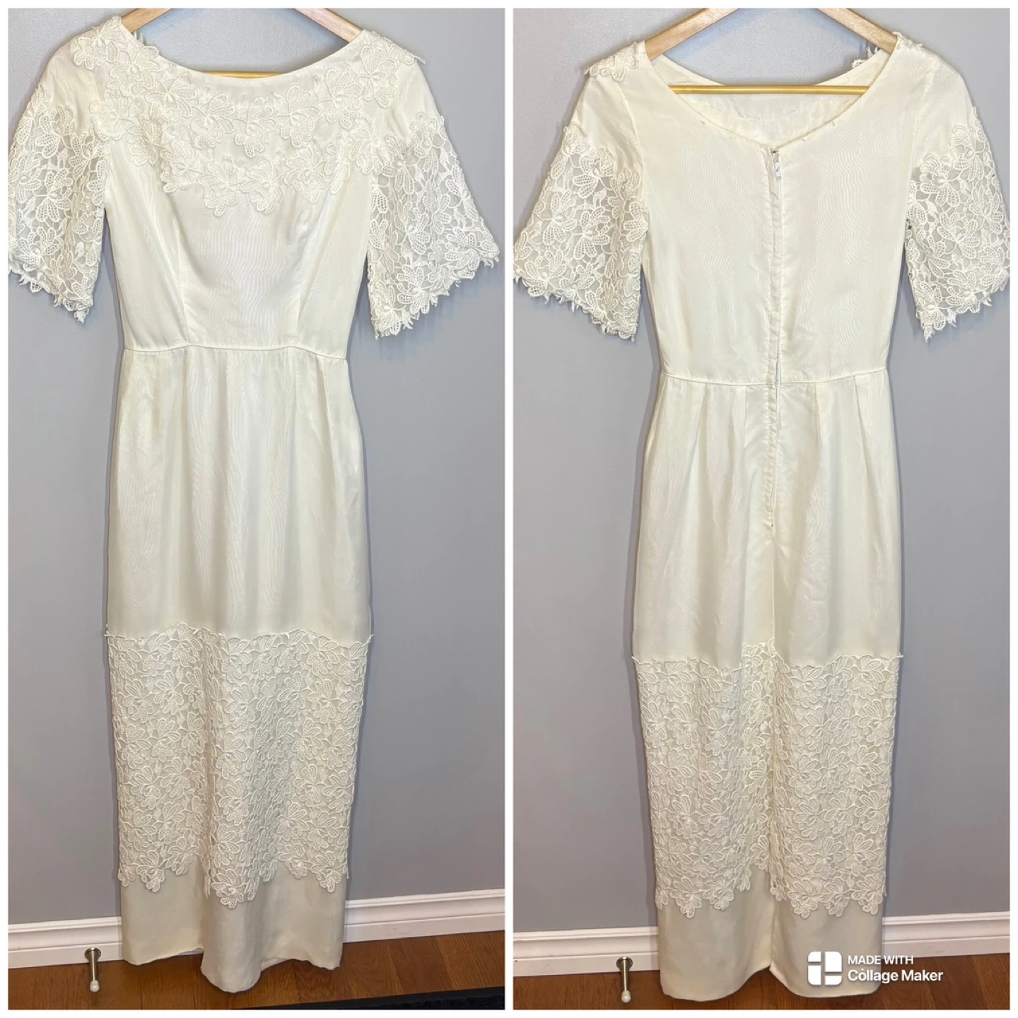 Vintage 1966 Handmade Lace Wedding Dress Detachable Train Sz S