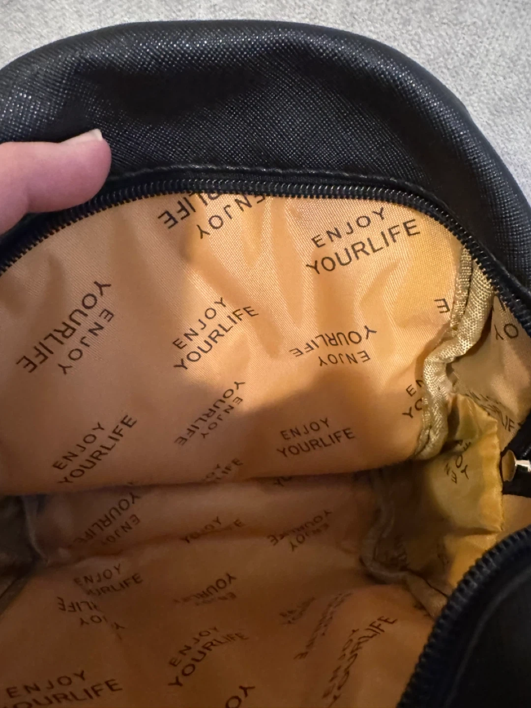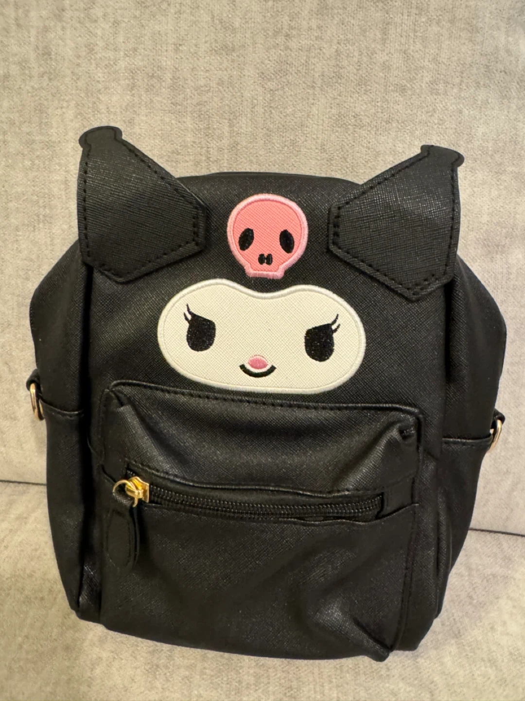Selling a cute, black Kuromi mini backpack! New, but unbranded. It has little cat ears and a small pocket on the front. The larger inner pocket is lined with fabric that says, “Enjoy Your Life”. Adjustable straps can make it a backpack or shoulder bag. Perfect for carrying your essentials in style!