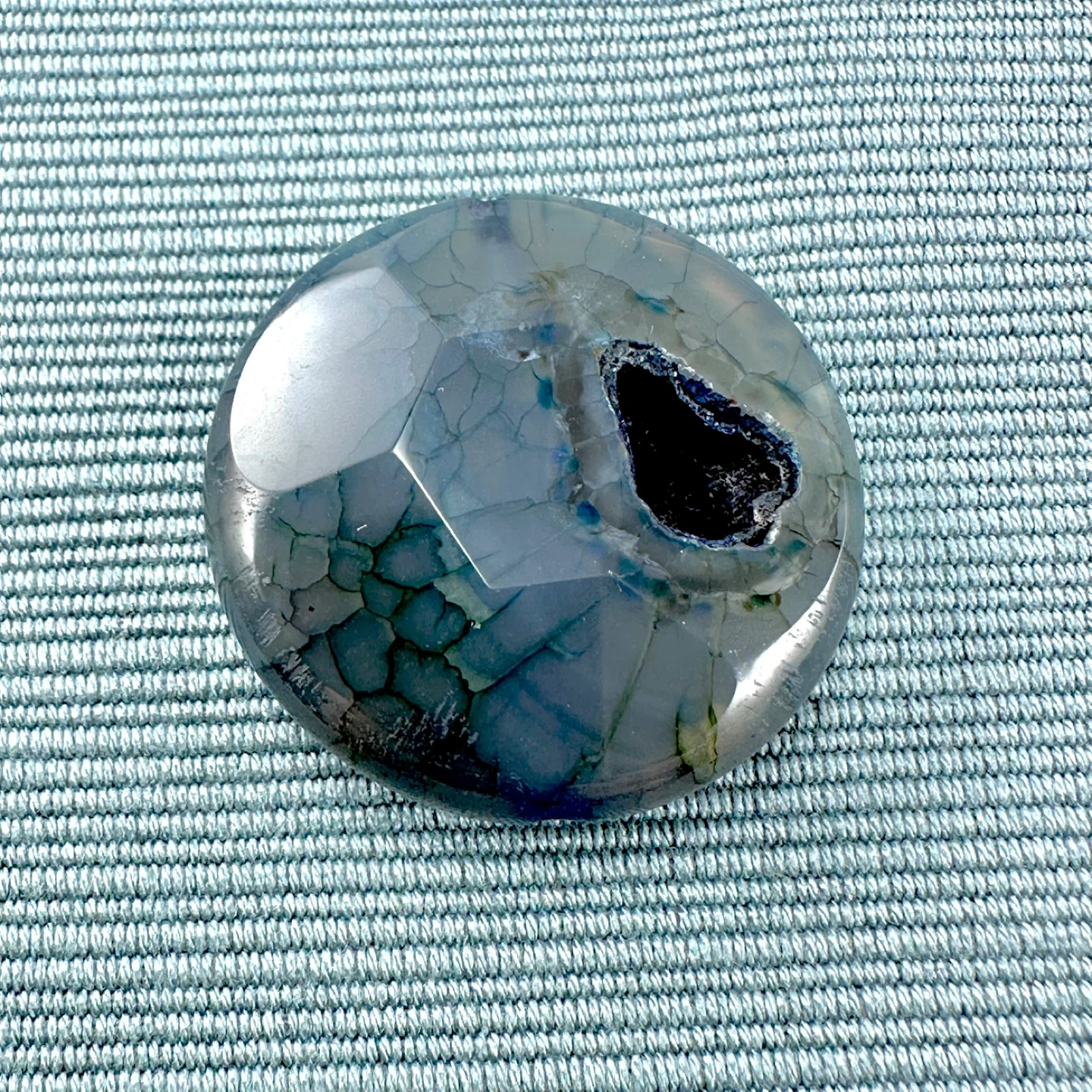 New faceted geode pendant (blues) for jewelry making— drilled to become a pendant. Approx 1-1/4” diameter