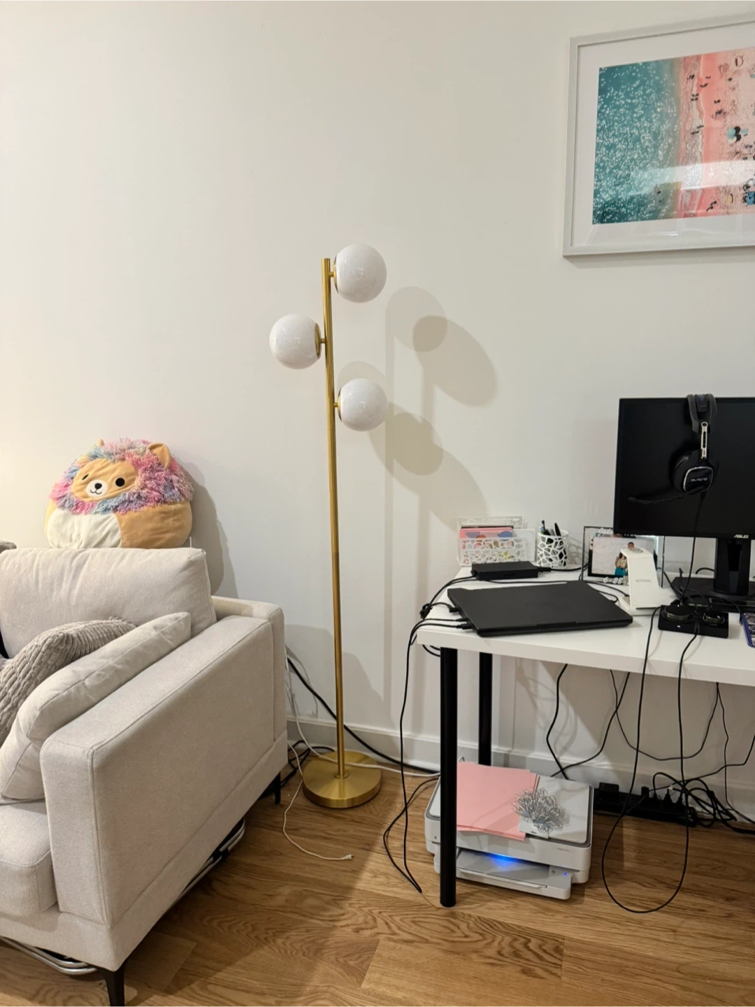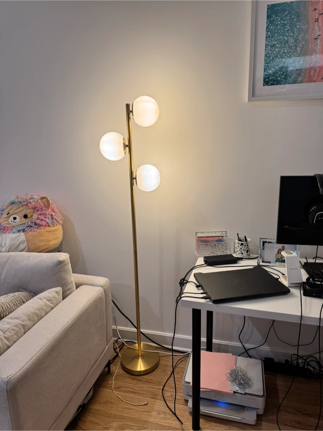Looking to add a touch of modern elegance to your space? This gold floor lamp features three beautiful globe shades.