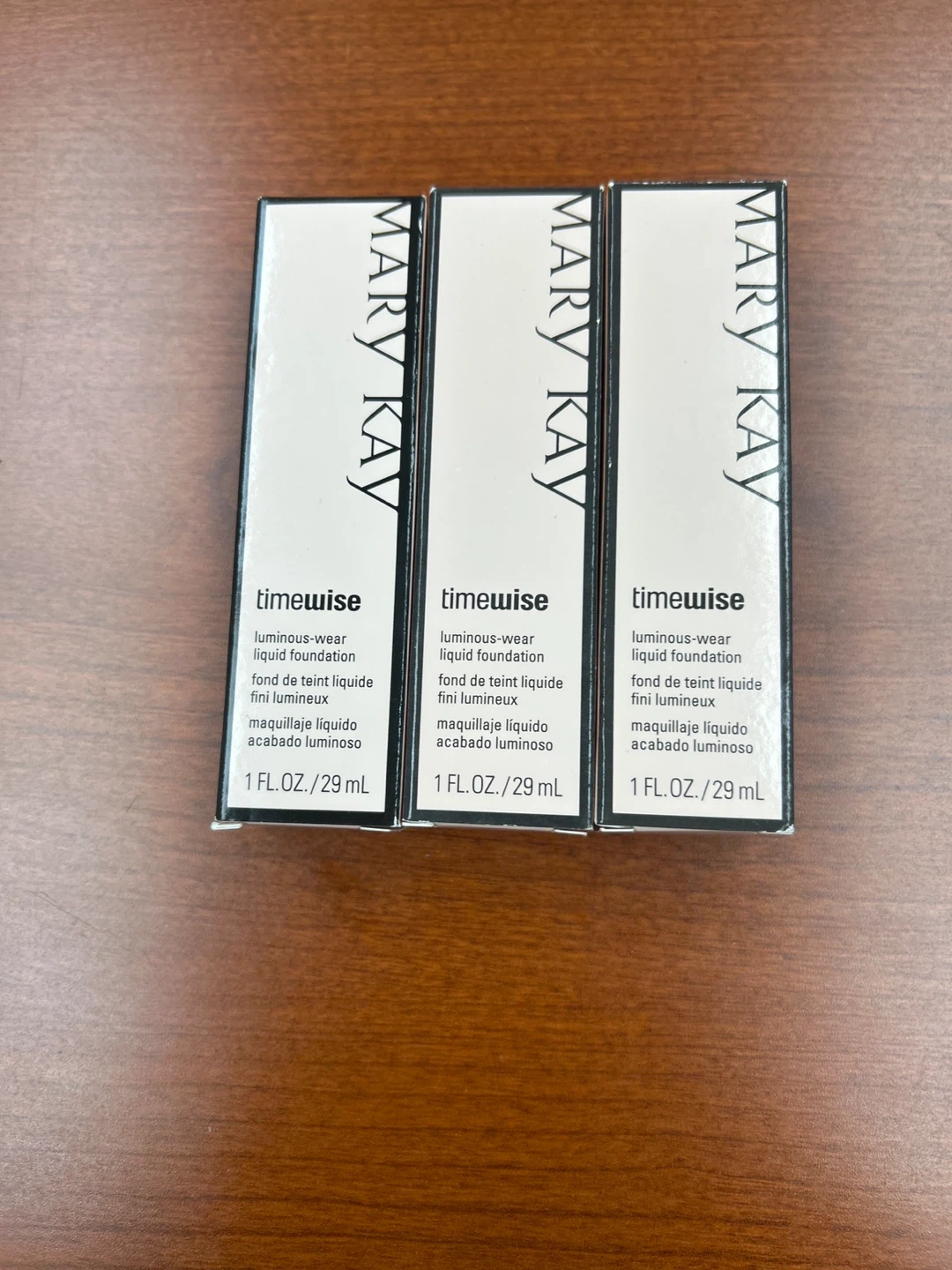 Selling Mary Kay Timewise luminous-wear liquid foundation. Each bottle contains 1 fl oz / 29 mL. Available shades are Beige 2, Beige 3, and Beige 5