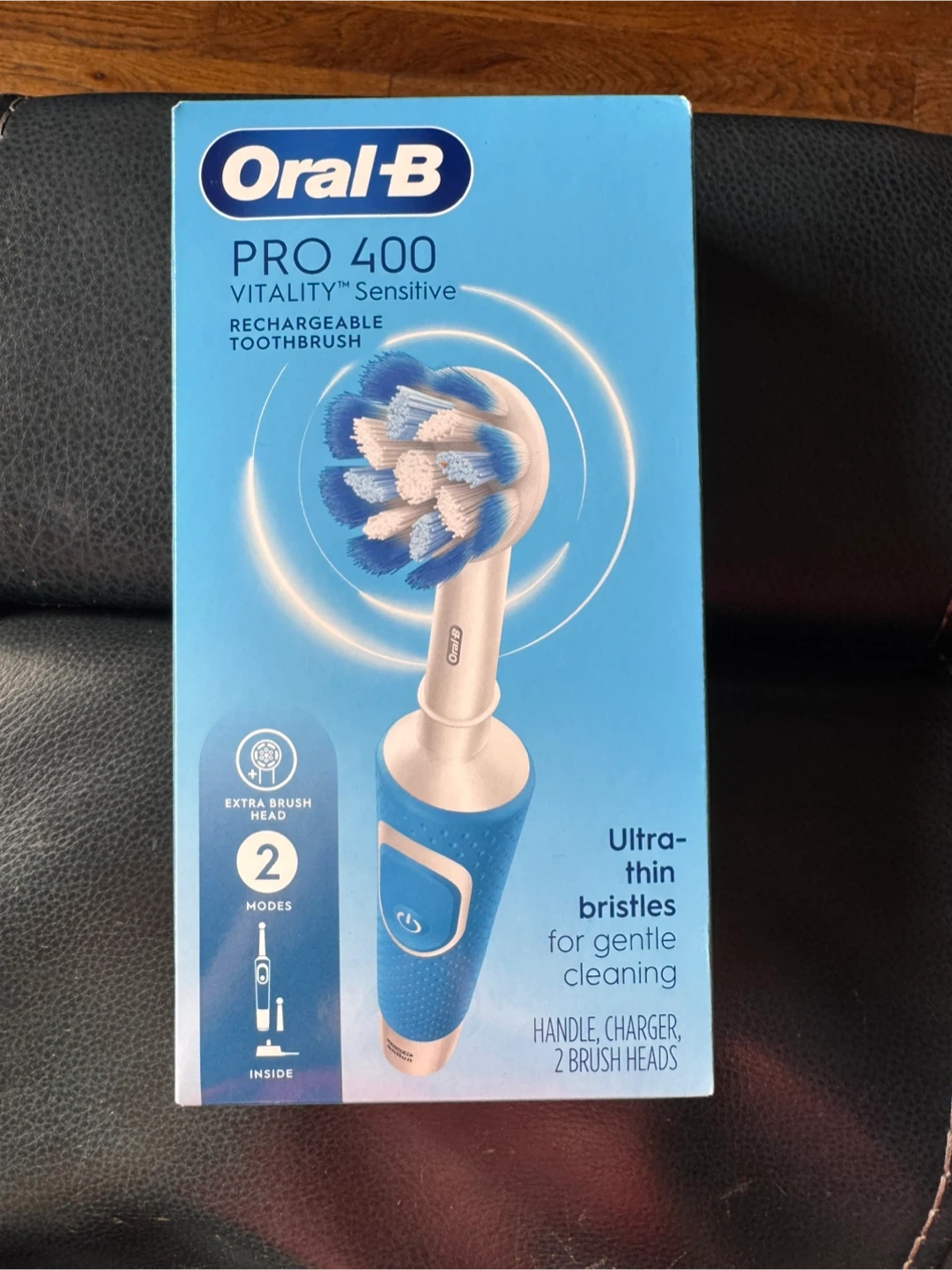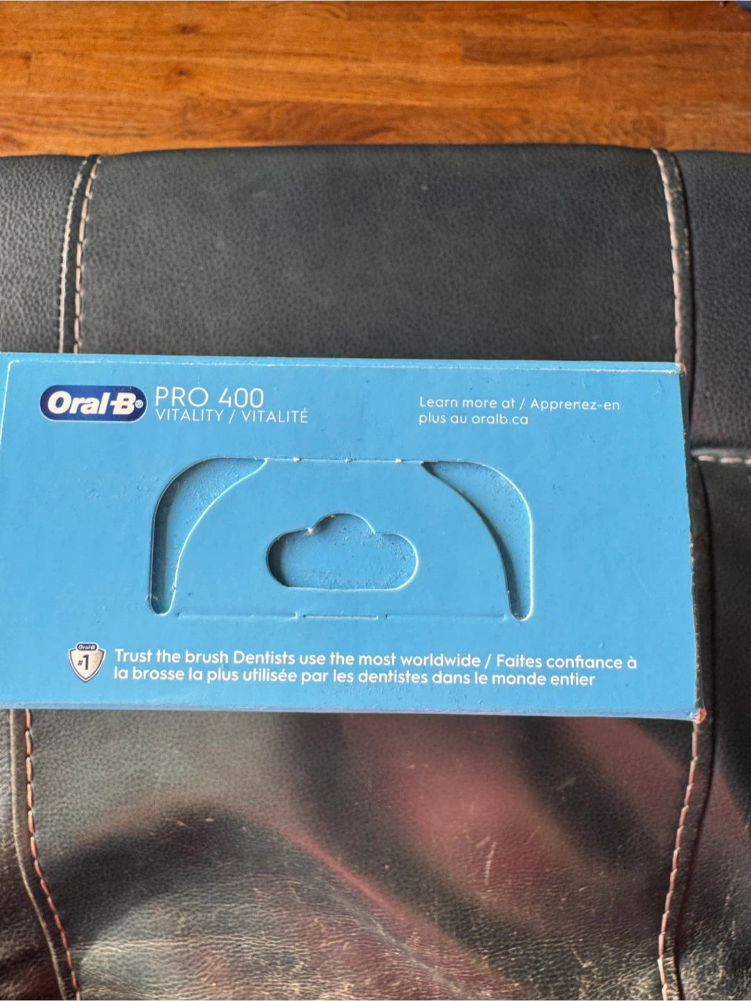 Brand new Oral-B PRO 400 Vitality Sensitive rechargeable toothbrush! It comes in its original box and includes the handle, charger, and 2 brush heads. It features ultra-thin bristles for gentle cleaning and a waterproof handle.