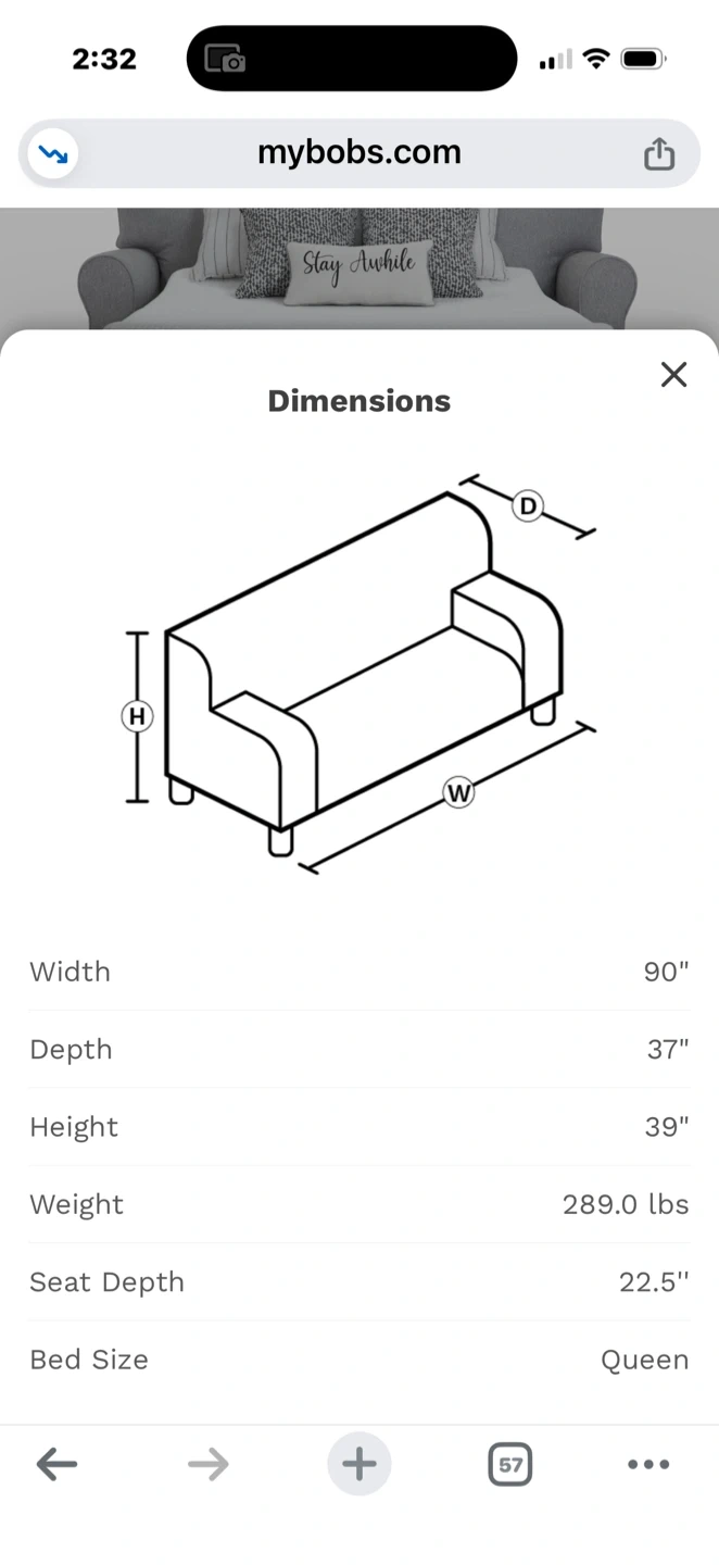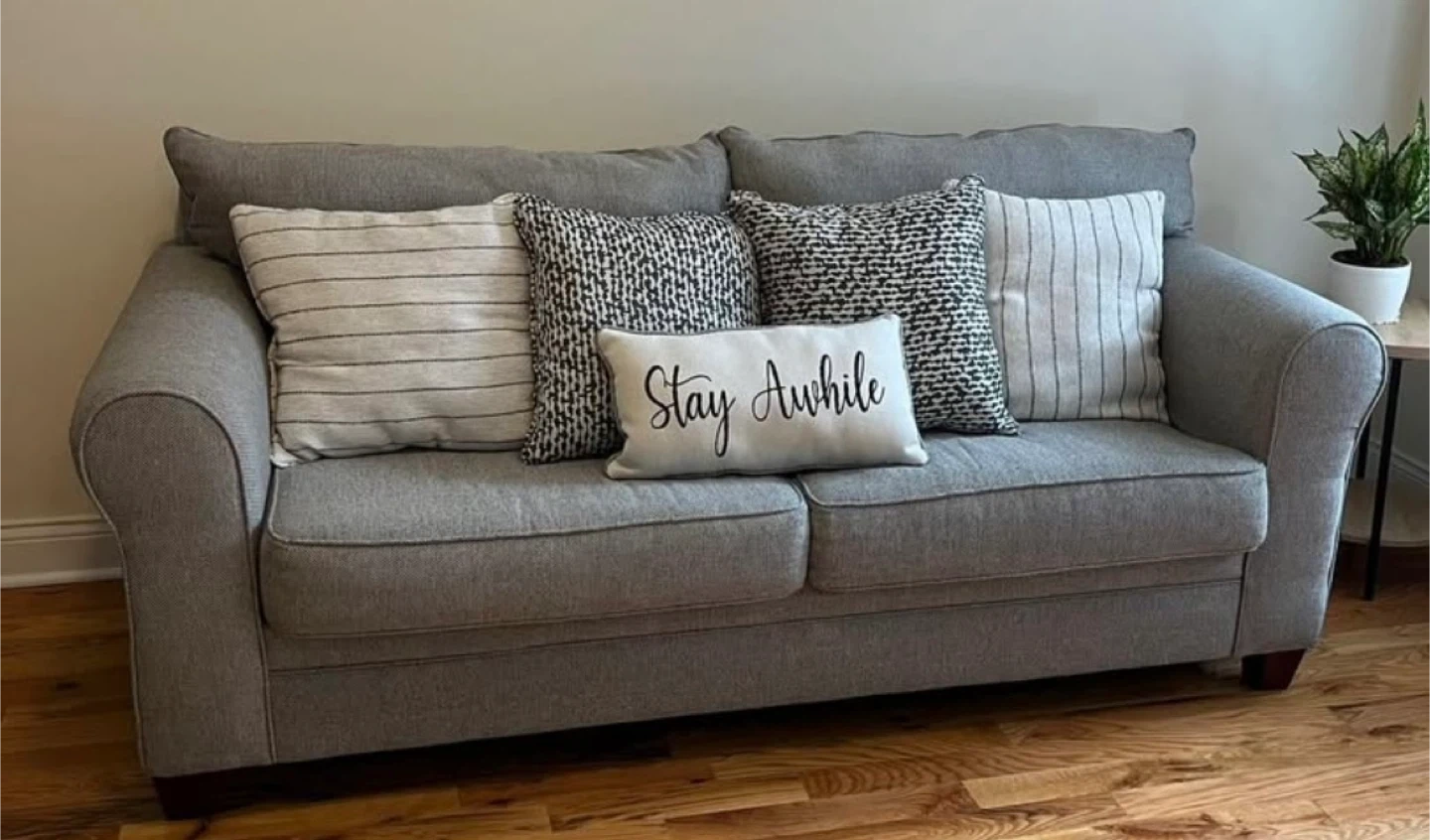 Selling a Bob's Furniture queen-size sleeper sofa. It's a comfortable gray couch that easily converts into a queen bed.
