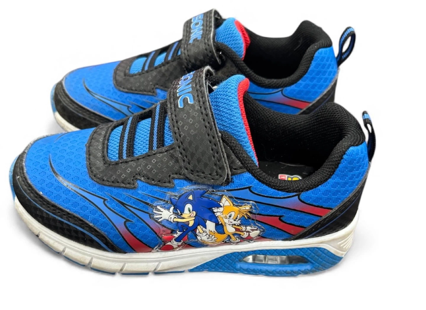 These Sonic the Hedgehog sneakers are a fun addition to any kid's wardrobe! They feature a vibrant blue and black design with Sonic and Tails on the sides. Plus, they light up for extra fun!