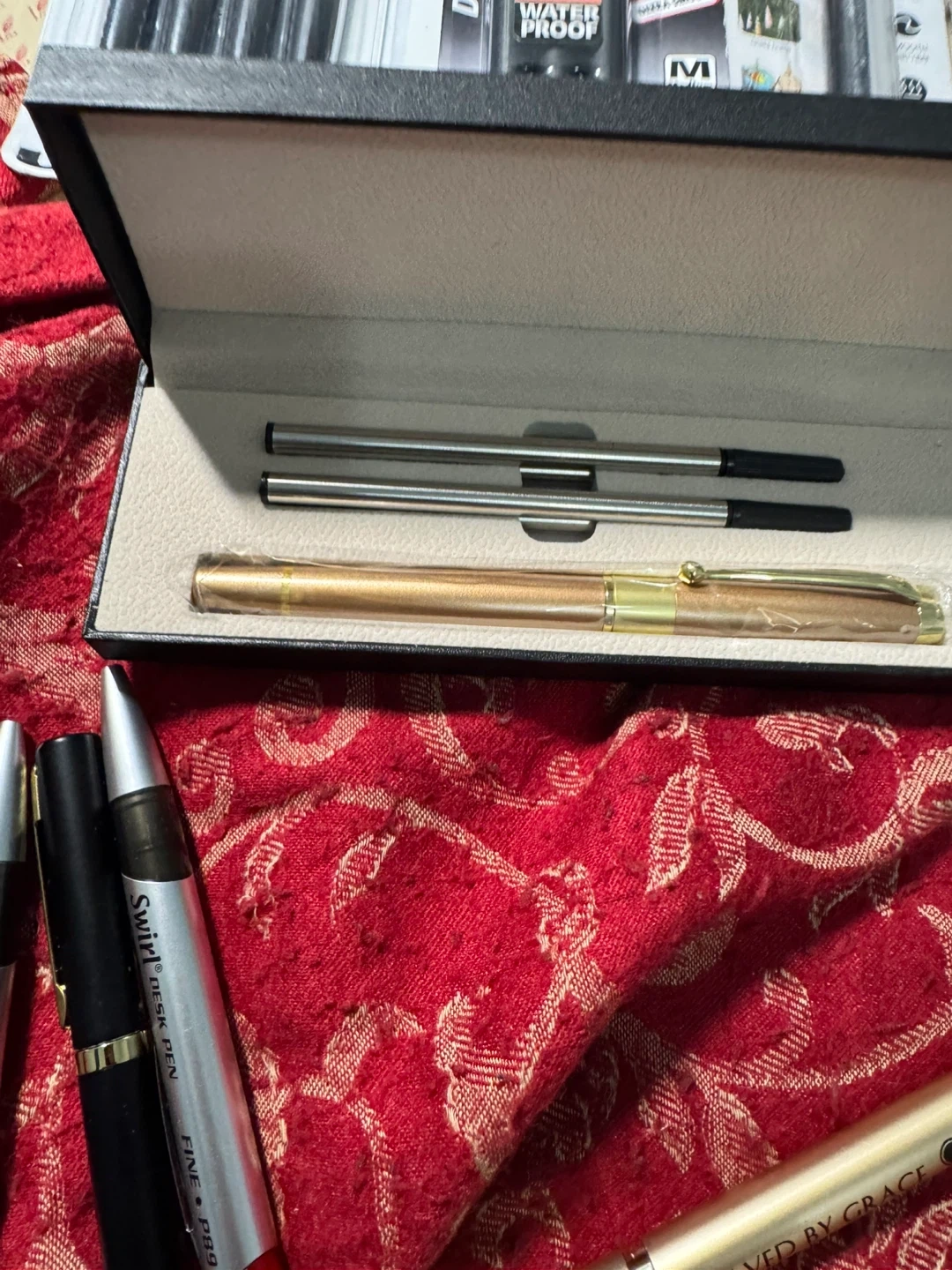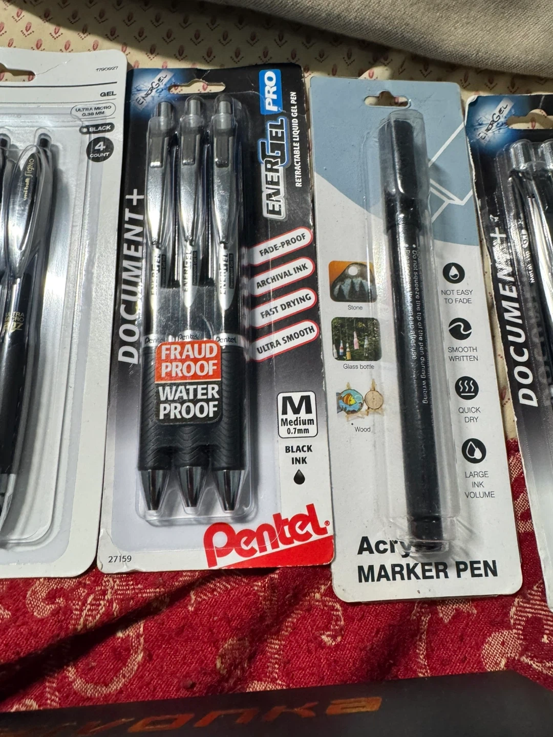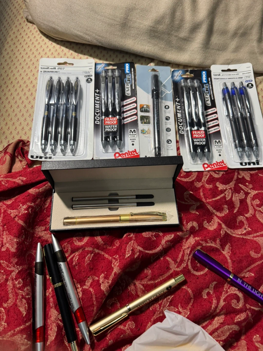 Selling a variety of pens including Uni-ball 207, Pentel EnerGel Pro, and an Acrylic Marker Pen! Also included is a pen set in a box with refills