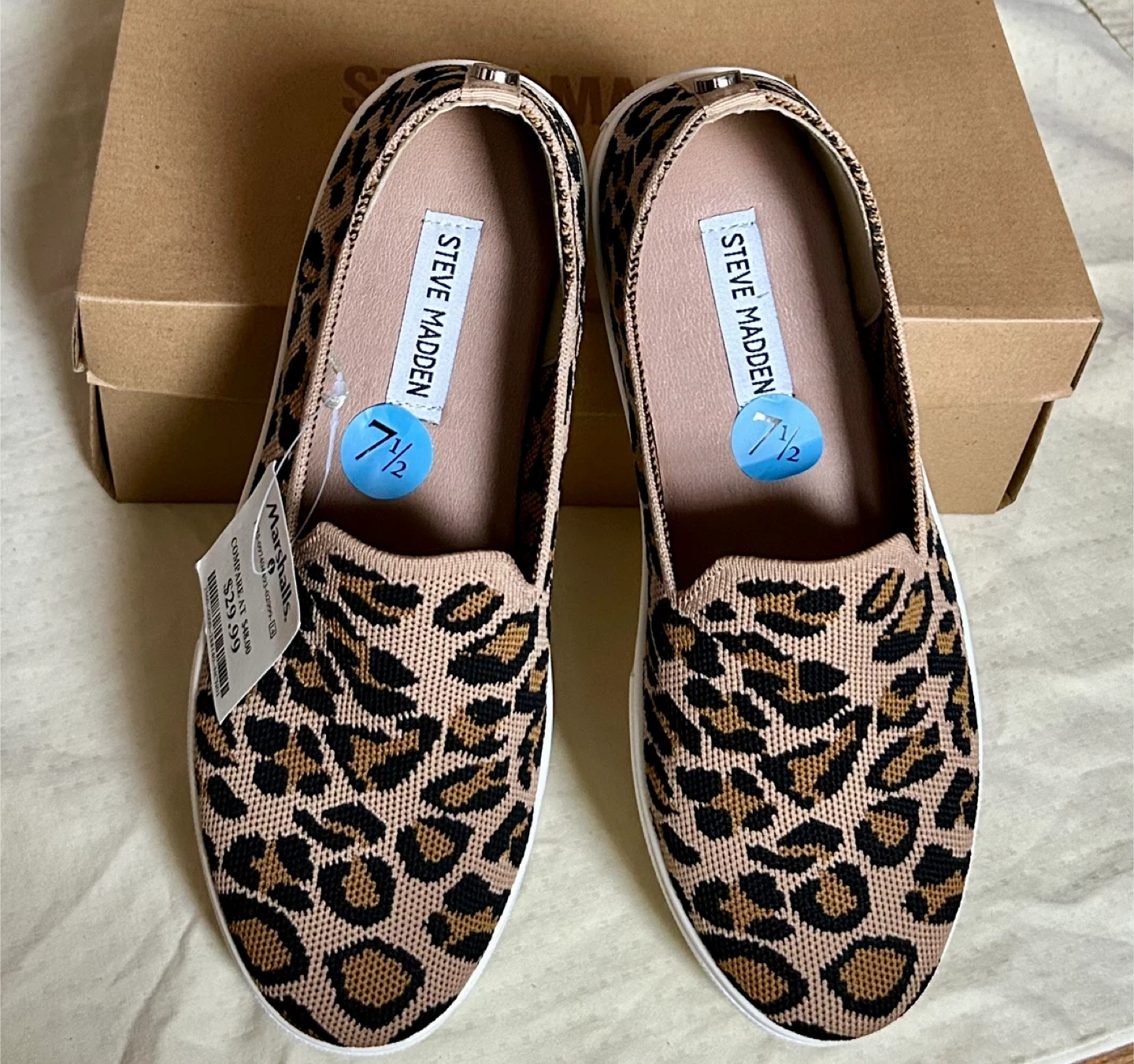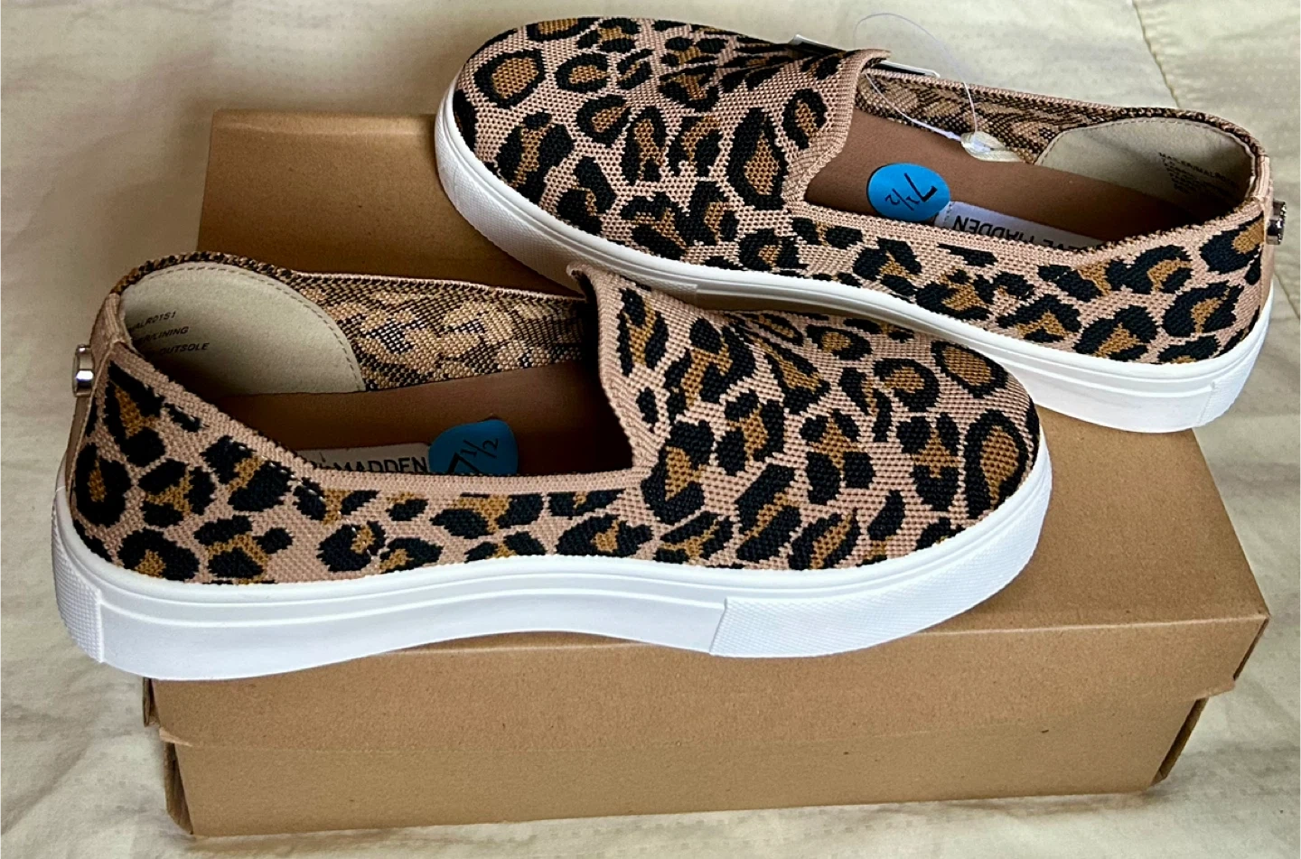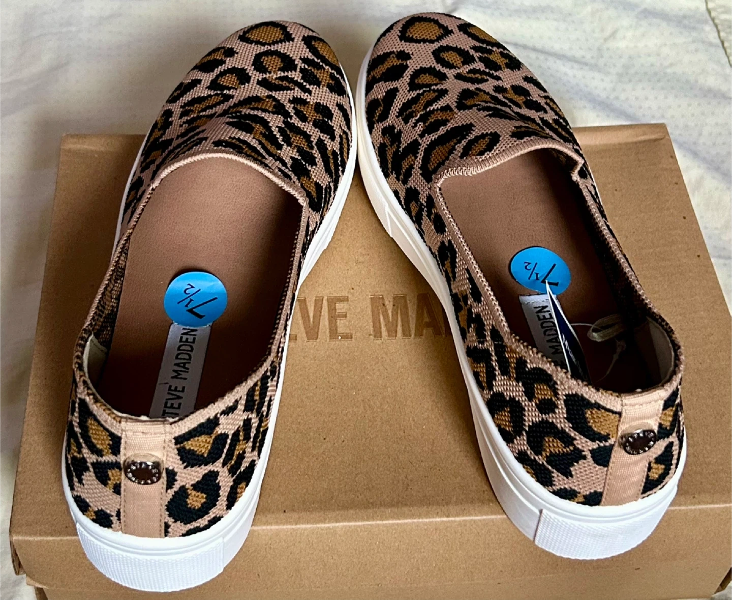 These brand new Steve Madden slip-on shoes are in a fun leopard print! They are a women's size 7.5.