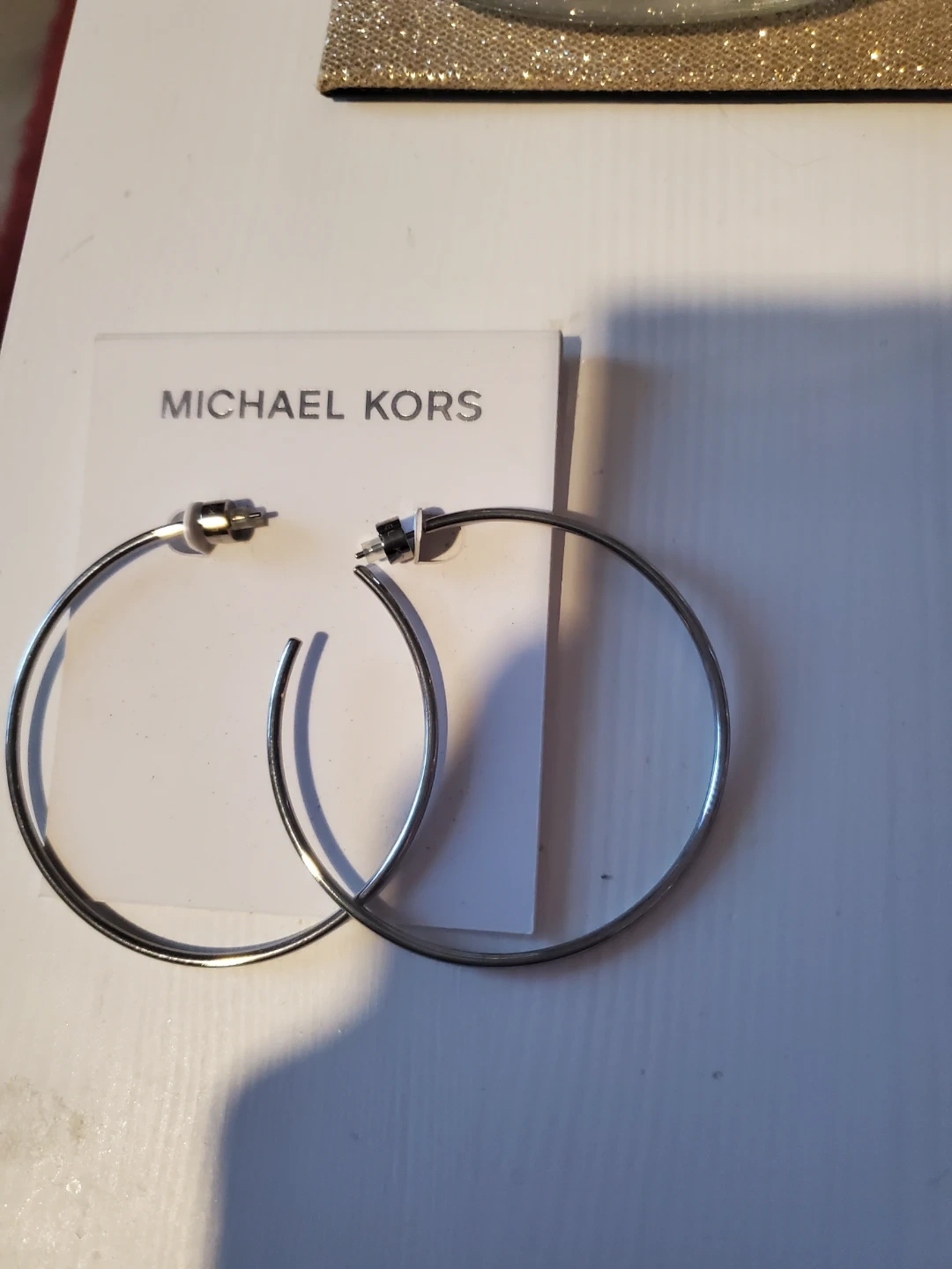 Selling a pair of Michael Kors silver hoop earrings. They're in great condition and ready for a new owner!