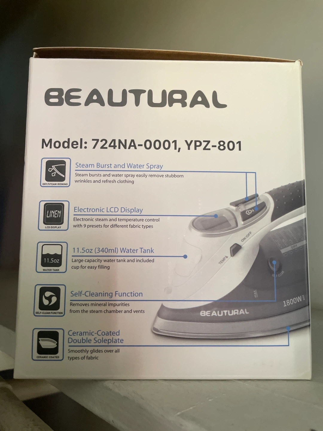 Beautural 1800W Steam Iron with Original Box
