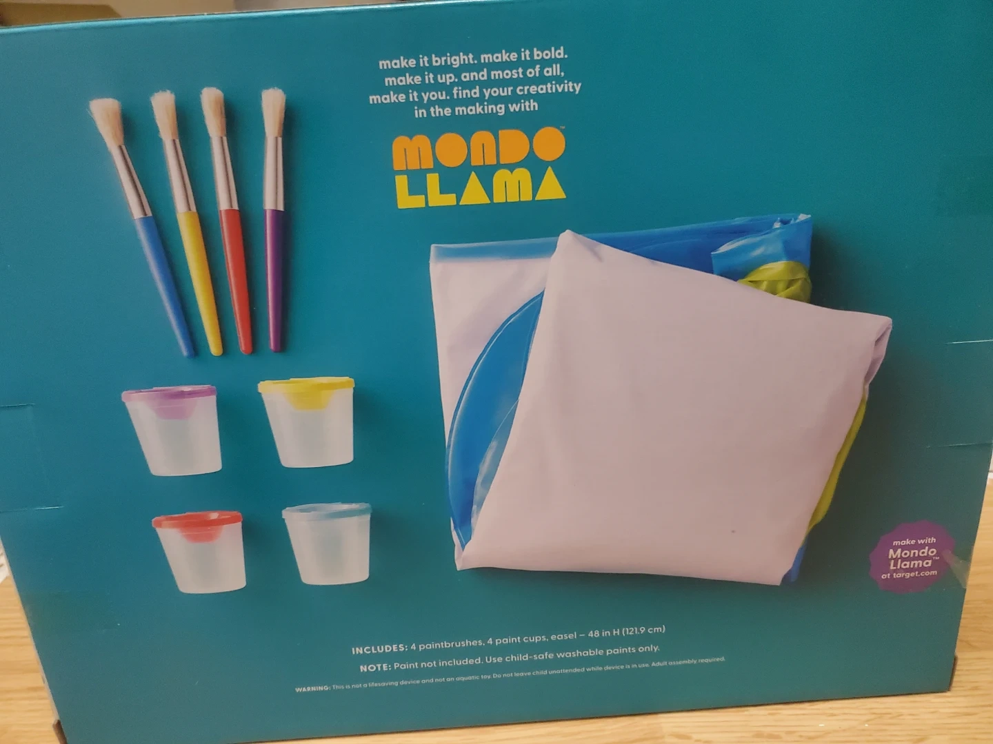 Selling a brand new inflatable easel set! It comes with 4 paintbrushes and 4 paint cups. Can deflate after using to help save space. The easel is 48" in height (121.9 cm). Great for an indoor or outdoor activity