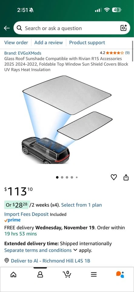 BNIB Glass Roof Sunshade for Rivian R1S