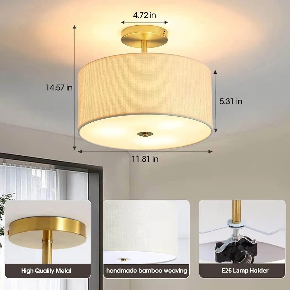 Fabric Semi Flush Mount Lighting Fixture
