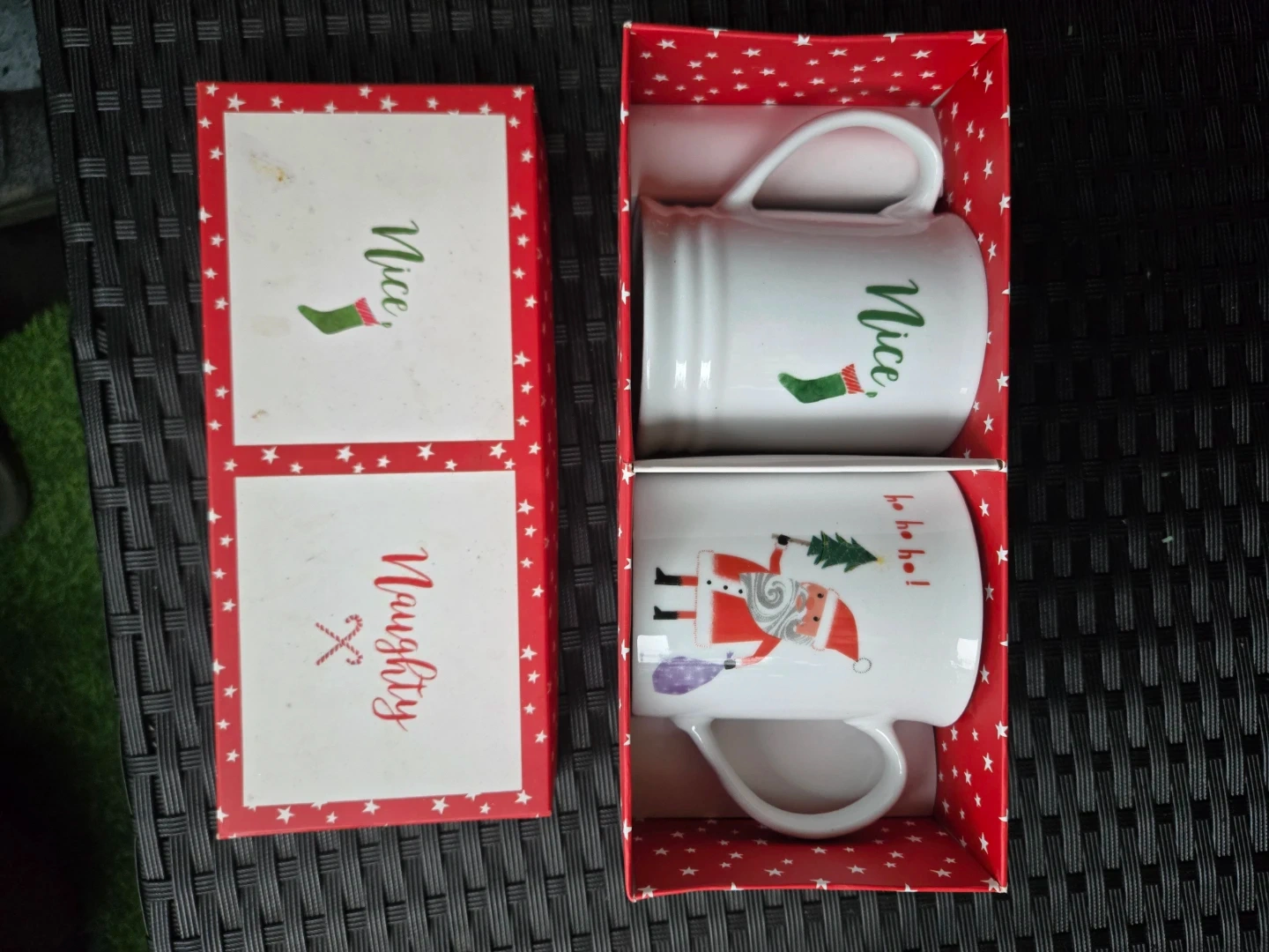 I have a set of Christmas mugs for sale! One mug says "Naughty" and the other says "Nice" They come in the original box, perfect for the holidays