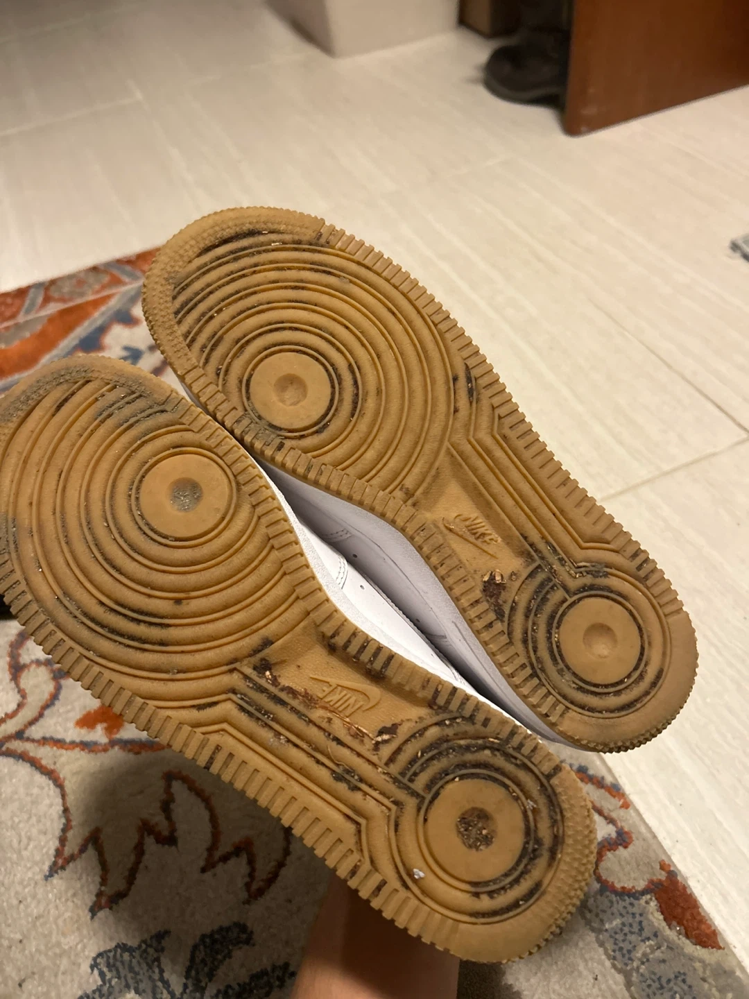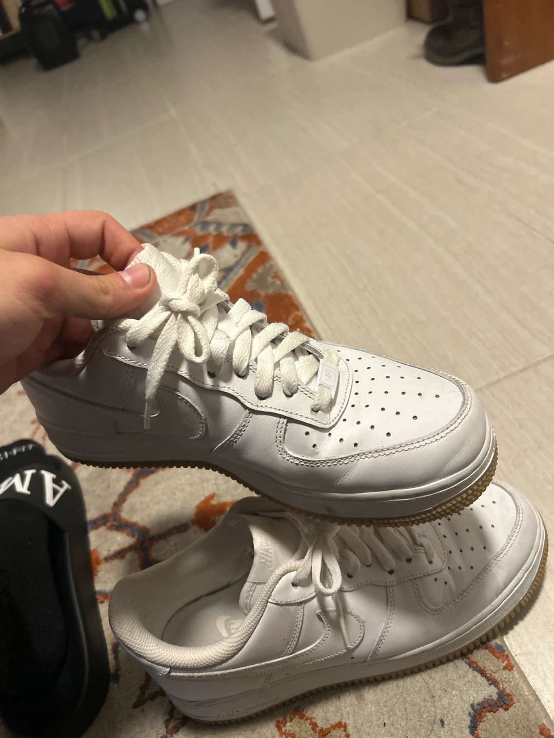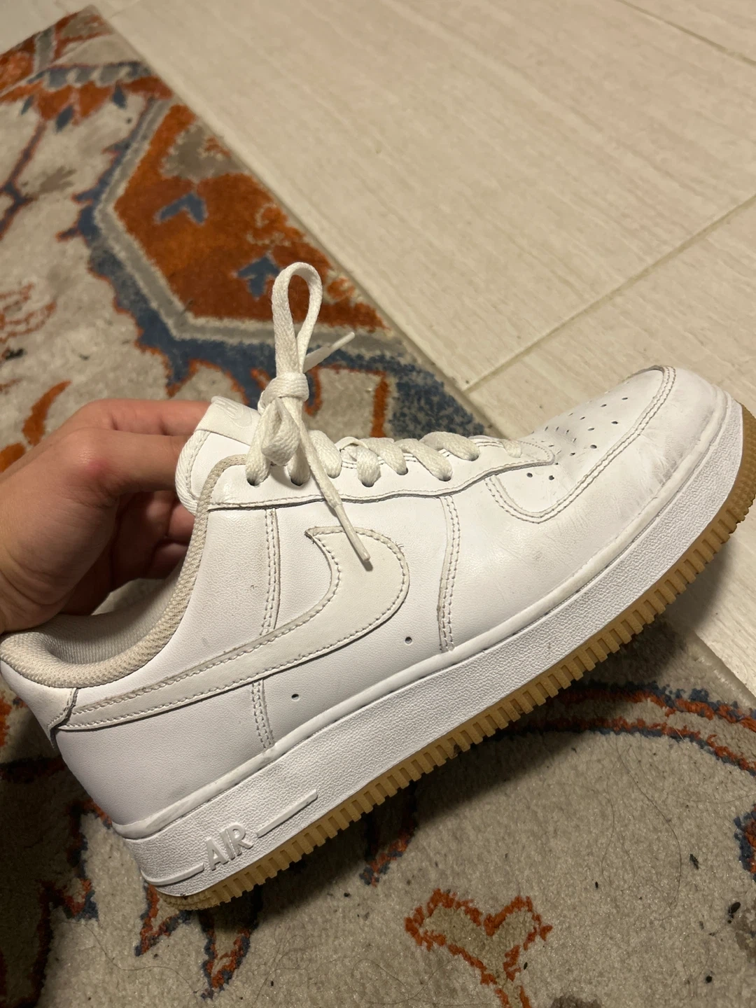 Selling a pair of Nike Air Force 1 '07 sneakers in white. They are a US size 8. Overall they're in good condition!