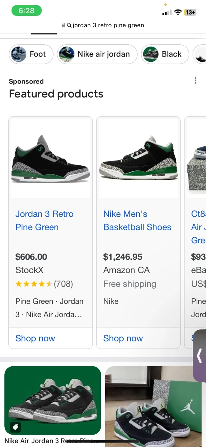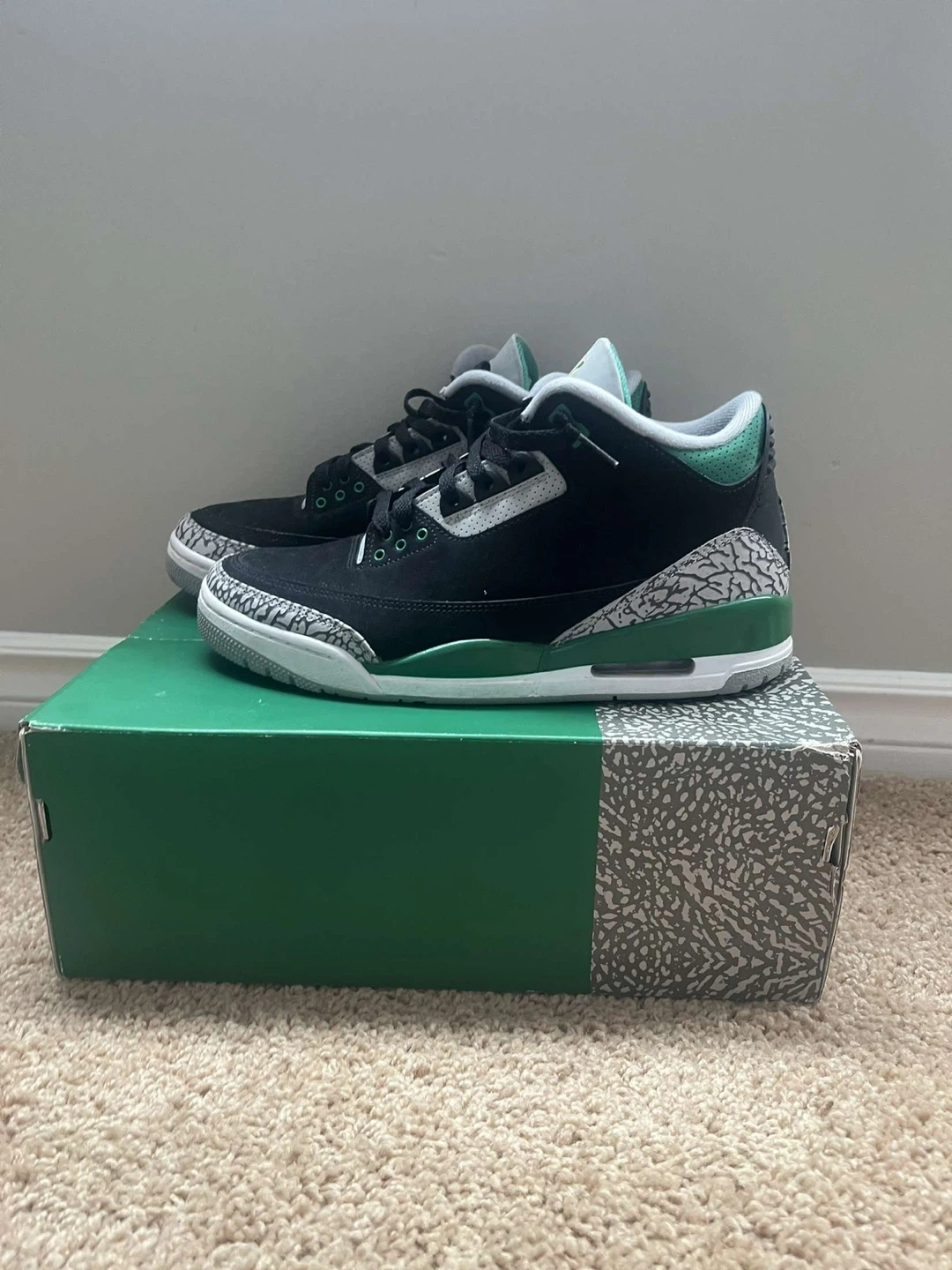 Selling a pair of Air Jordan 3 Retro in the 'Pine Green' colourway, size 9. They come with the original box.