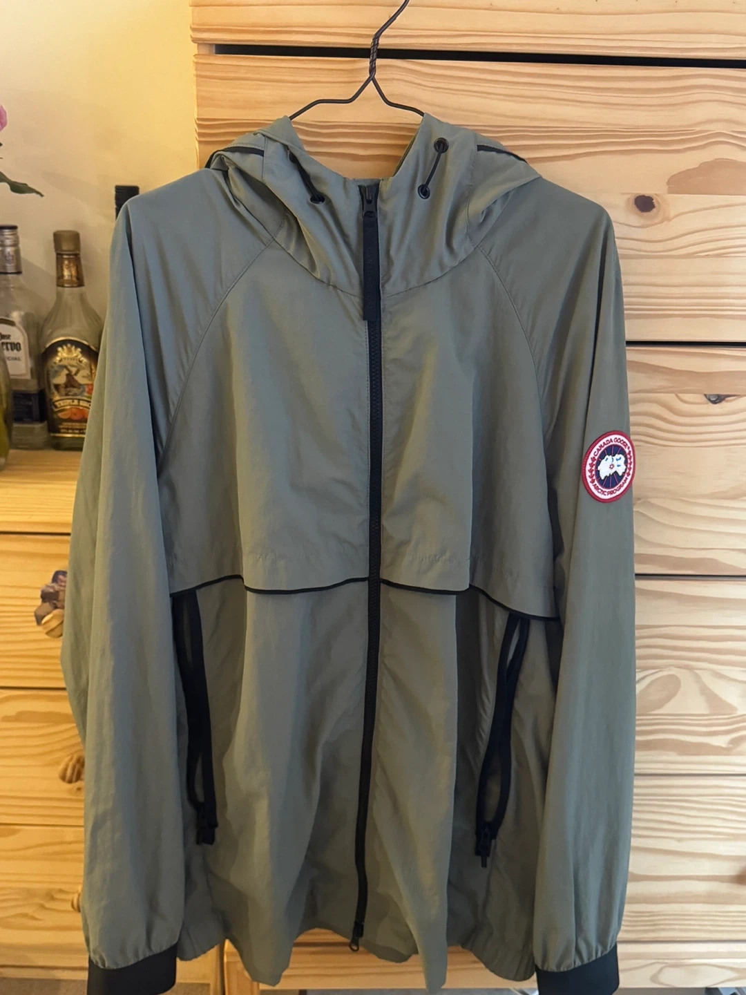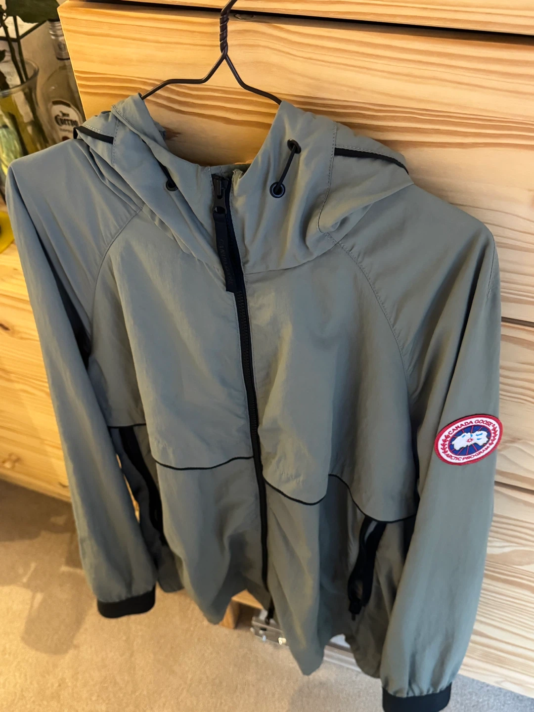 Selling a Canada Goose windbreaker jacket in great condition! It's a size Large and features the classic Canada Goose logo on the sleeve. Perfect for those breezy days.