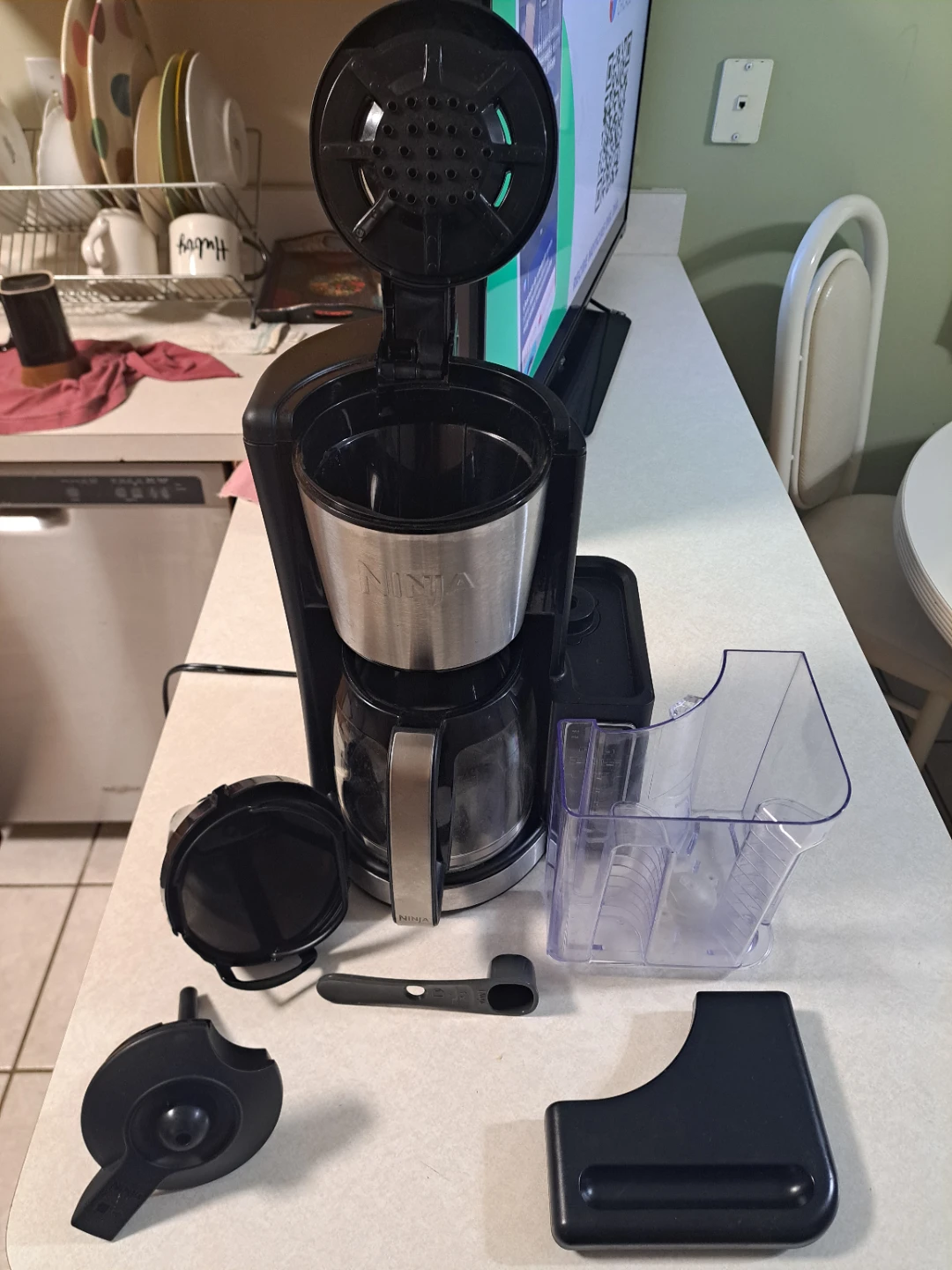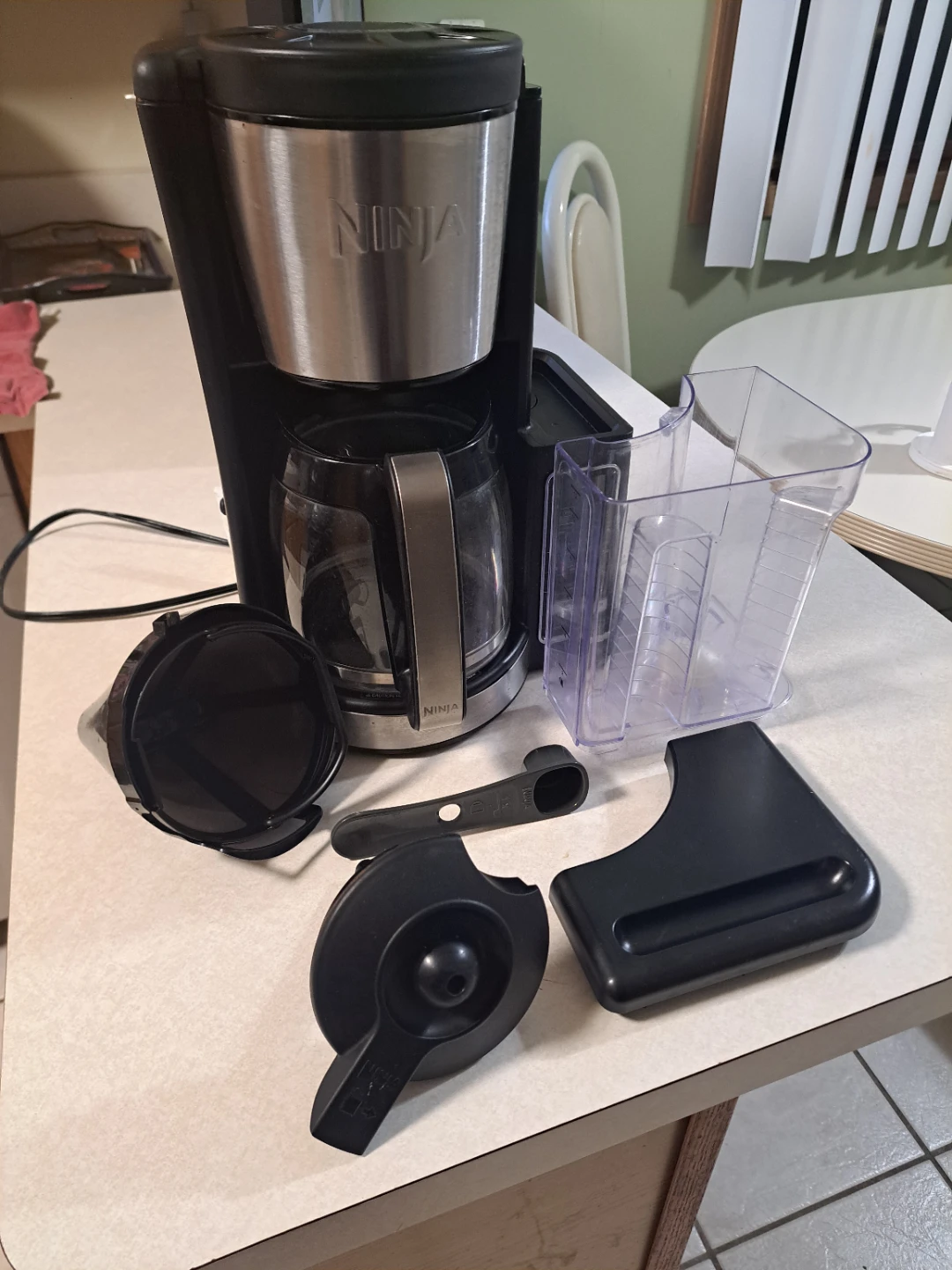 Selling a Ninja Coffee Maker! It comes with all the accessories you see in the pictures, including the carafe, filter, water reservoir, scoop, and other components. It has settings for classic, rich, and small batch brews. A great coffee maker for your home!