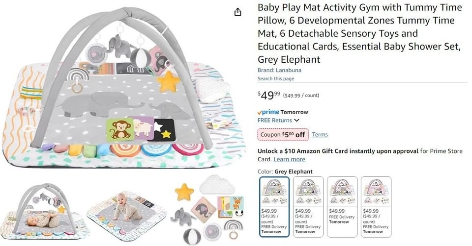NEW~Baby Mat w/ Pillow, 6 Toys + Cards, Elephant (0-18M)