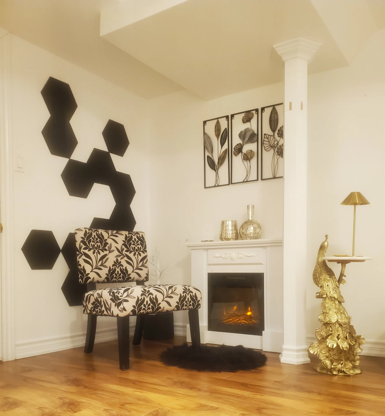 Add a touch of elegance to your home with this beautiful floral accent chair! The chair features a stylish black and white floral pattern and sturdy black legs. It's perfect for adding a chic and comfortable seating option to any room. A great addition to any home decor!