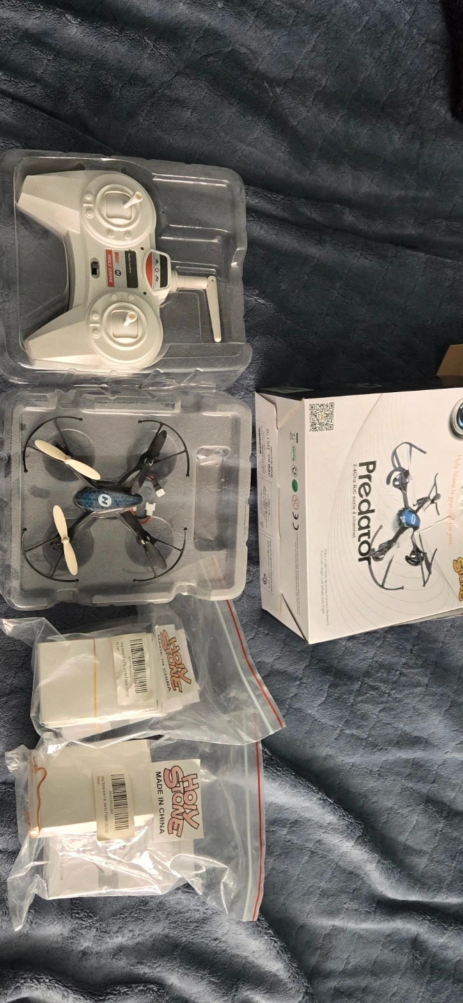 Selling a Holy Stone Predator Mini Drone! It's still in its original packaging and has rarely been used. Perfect for beginners or anyone looking for a fun and easy-to-fly drone w extra batteries.