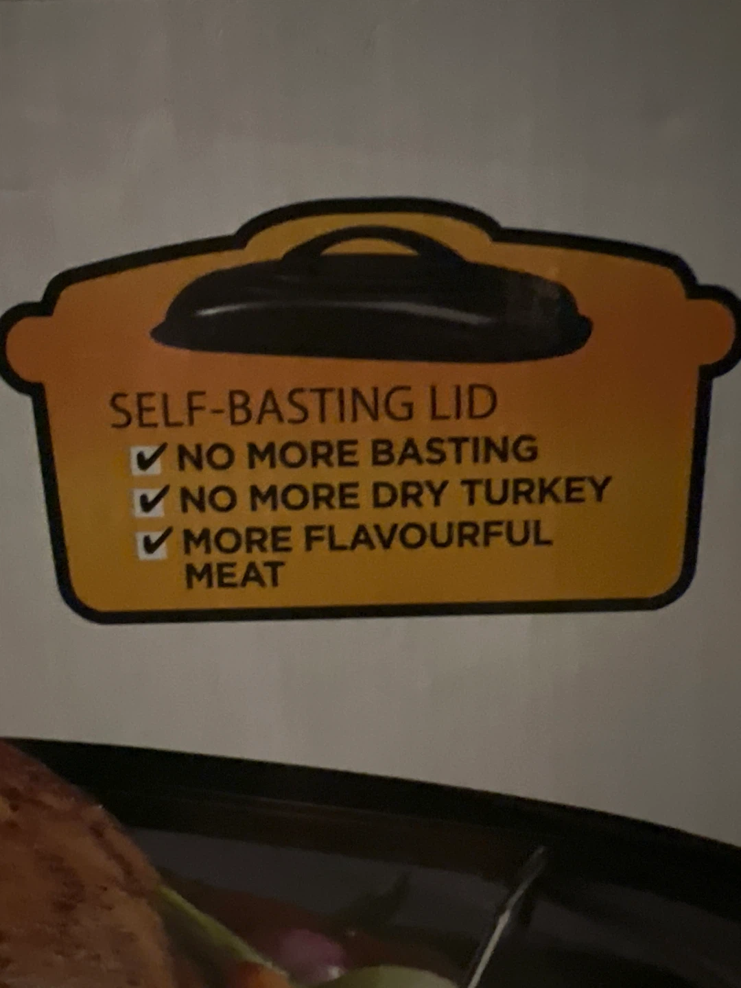 Self-basting lid saves time, heat and energy.