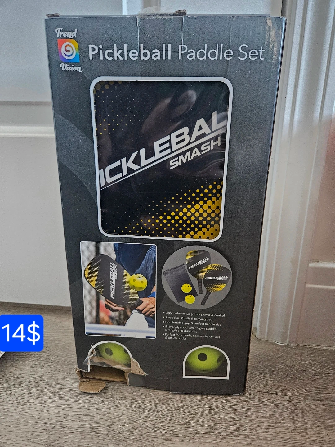 Selling a Trend Vision Pickleball Paddle Set! It includes 2 paddles, 2 balls, and a carrying bag. The paddles have a comfortable grip and perfect handle size, plus a 5-layer plywood core for strength and durability. It's designed with a light balance weight for power and control. Perfect for schools, community centers, and athletic clubs!