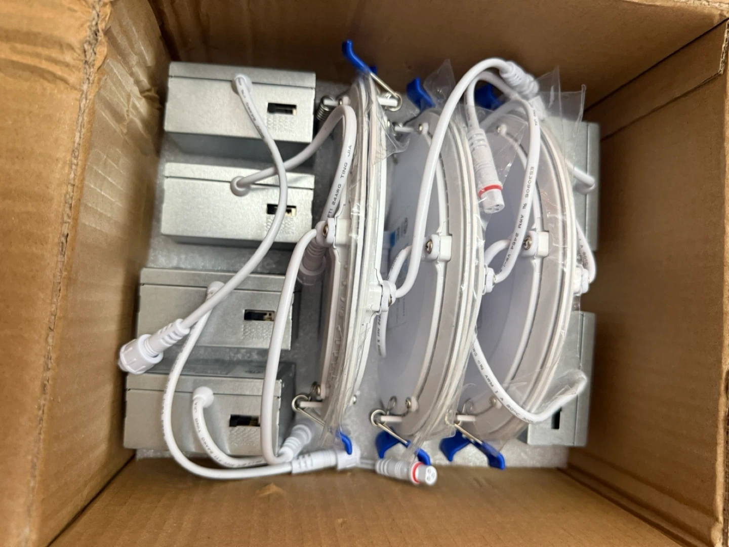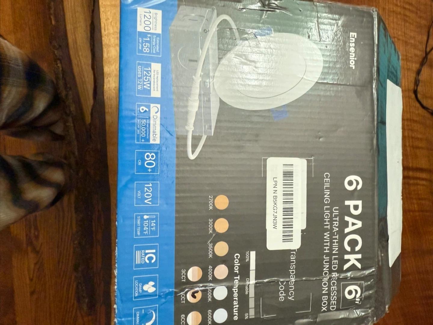 Selling a brand new, unopened 6-pack of Ensenior 6-inch ultra-thin LED recessed ceiling lights with junction boxes! These lights are dimmable and have adjustable colour temperature from 2700K to 6000K. Includes everything you need for installation, including the user manual and cutting template! The box includes 6 lights, each using 12.5W and 120V.