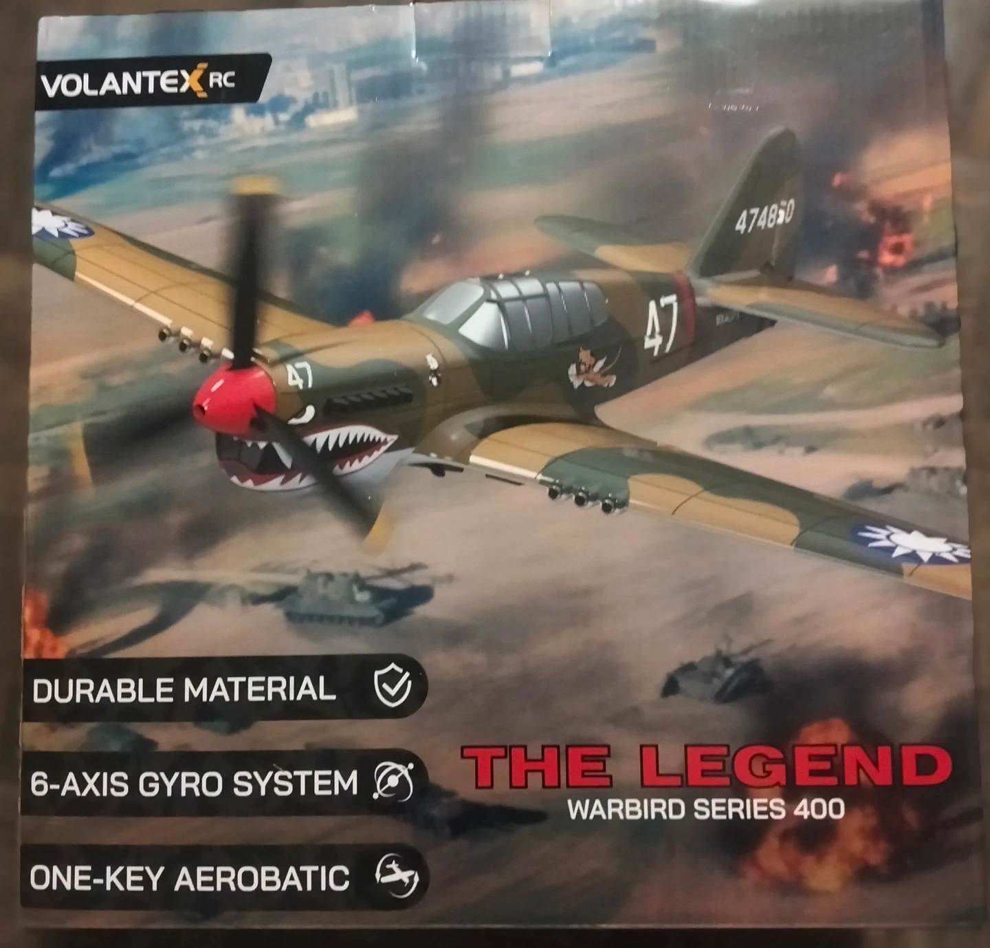 Selling a VolantexRC Warbird Series 400 RC Airplane. It features a durable material, 6-axis gyro system, and one-key aerobatic function. It's designed for ages 14 and up with adult supervision.