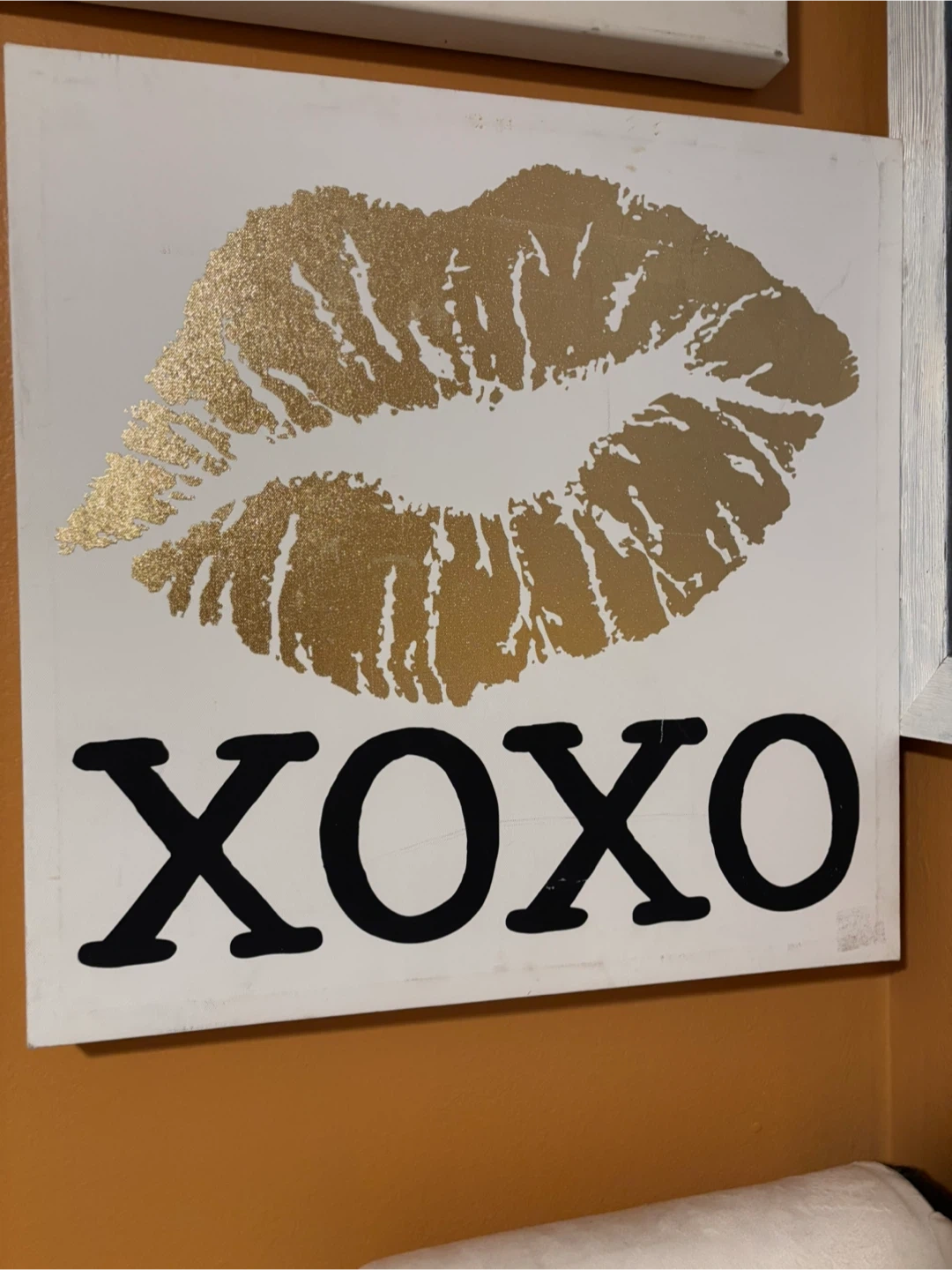 Cute XOXO wall decor with a gold kiss design! It's in good condition and would look great in any room