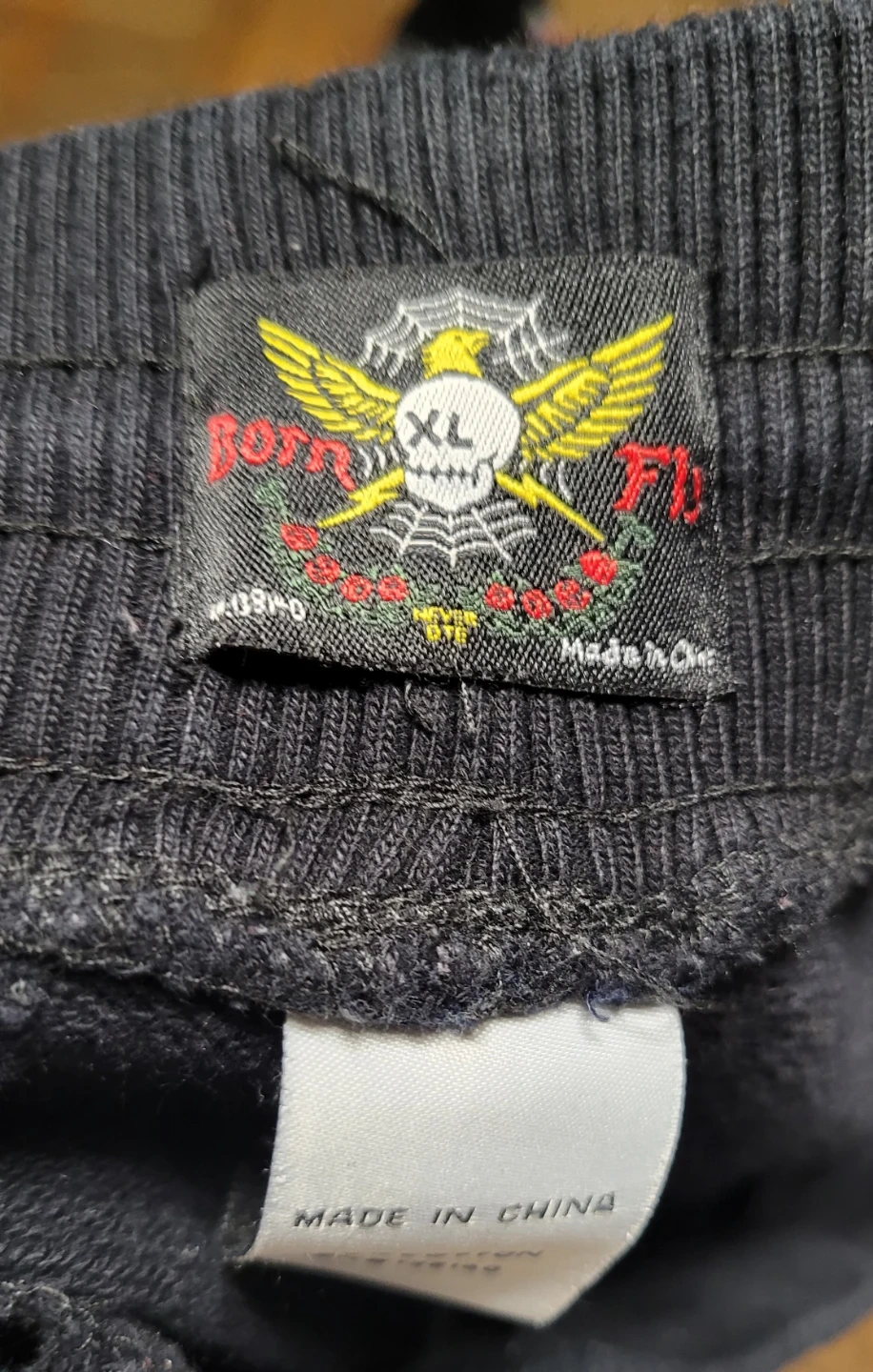 Born Fly matching hoodie and pants set in size XL! The hoodie has a unique design, and the pants have a sporty stripe detail. Great for casual wear!