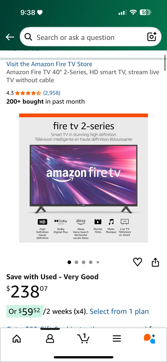 Selling an Amazon Fire TV 40" 2-Series HD Smart TV. It's in very good condition.