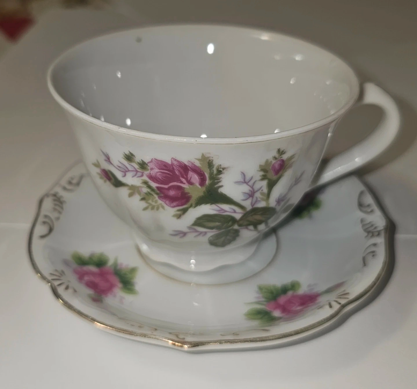 Tea Cup and Saucer with Floral Design