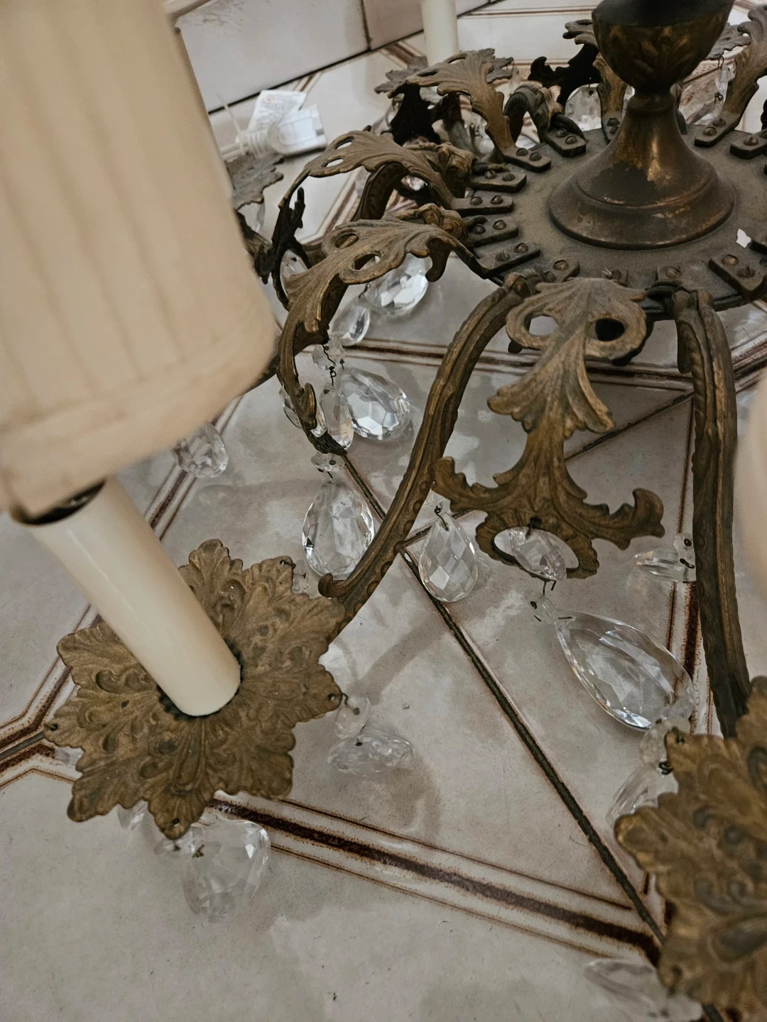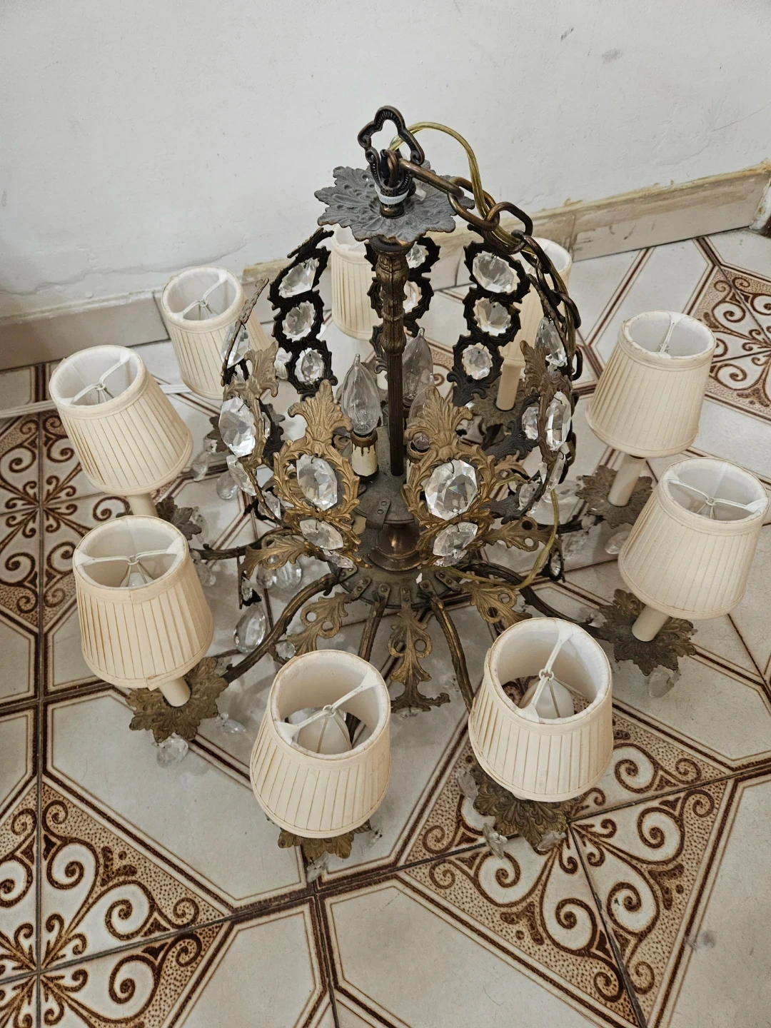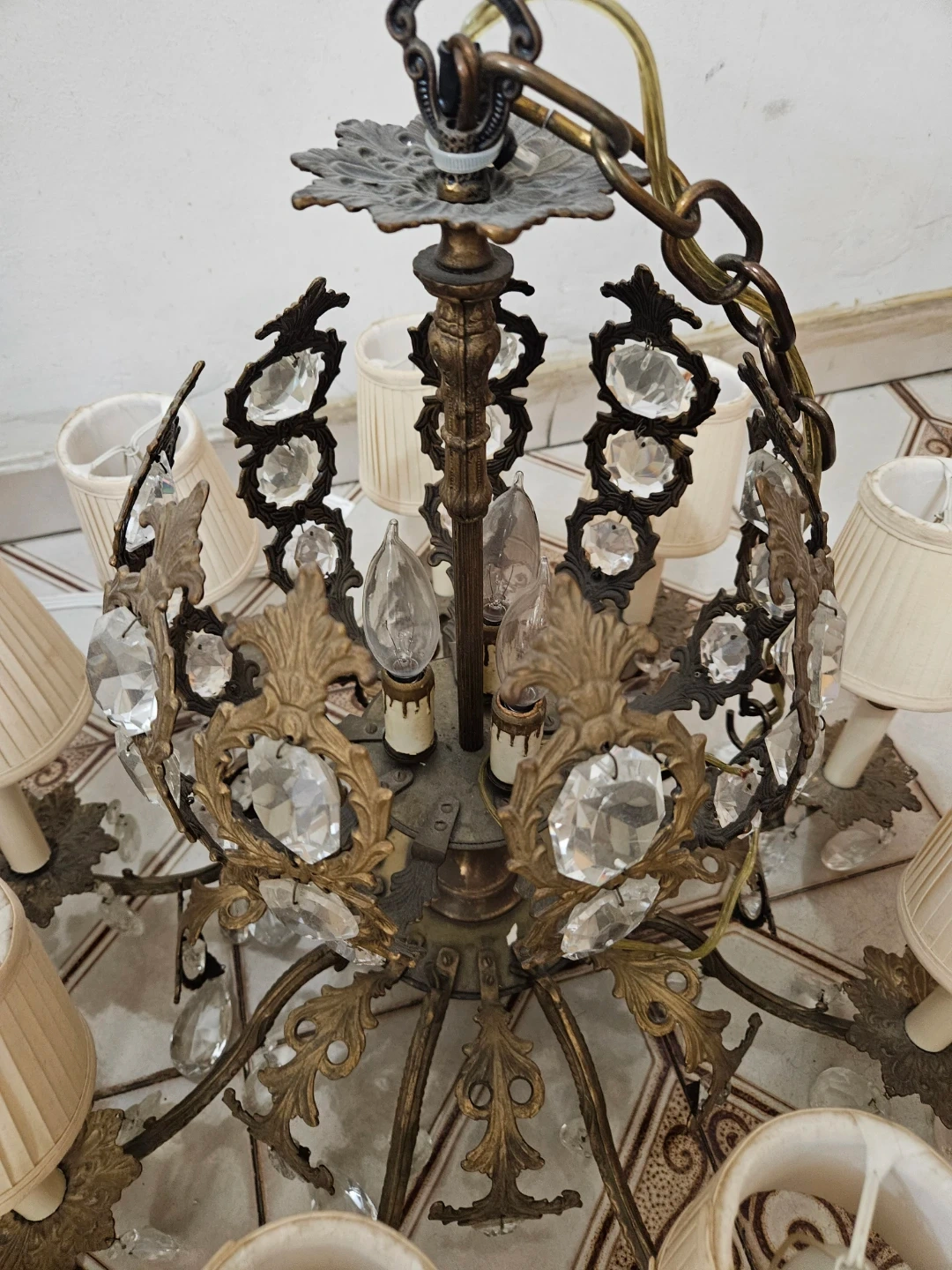 Beautiful vintage 12 light crystal and brass chandelier