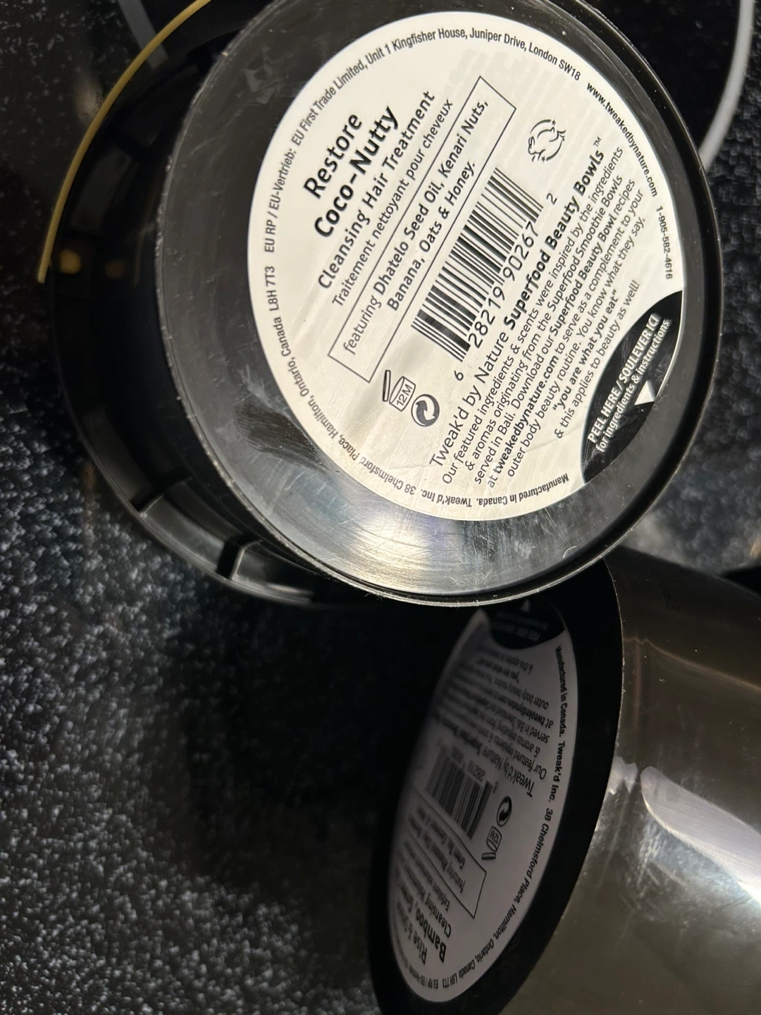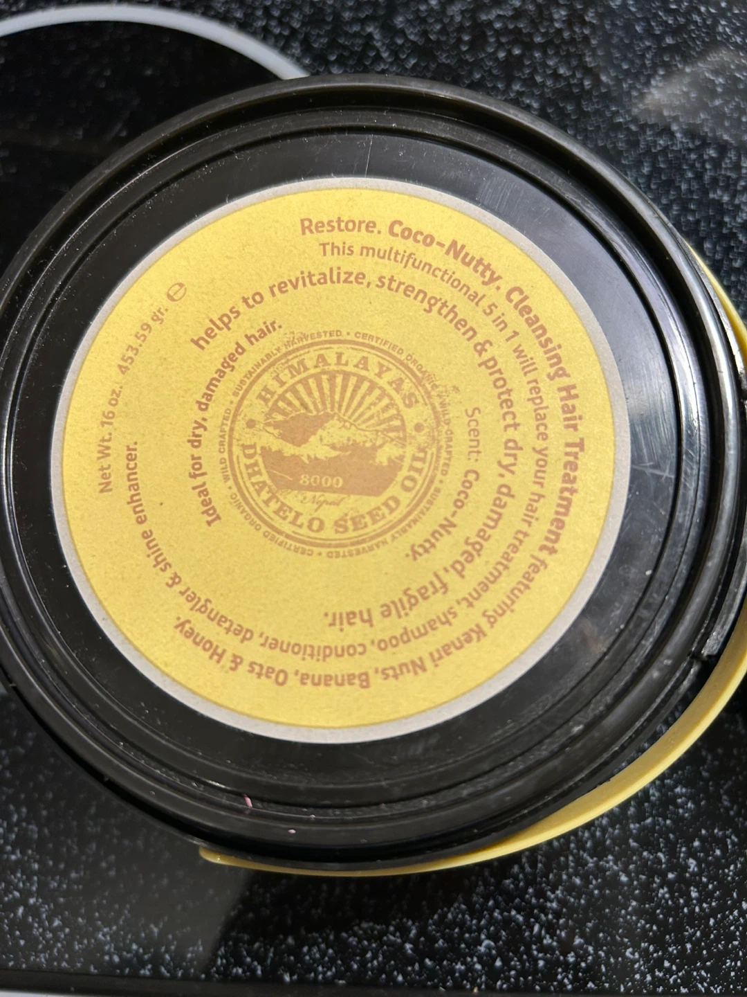 - Restore Coco-Nutty Cleansing Hair Treatment featuring Dhatelo Seed Oil, Kenari Nuts, Banana, Oats & Honey