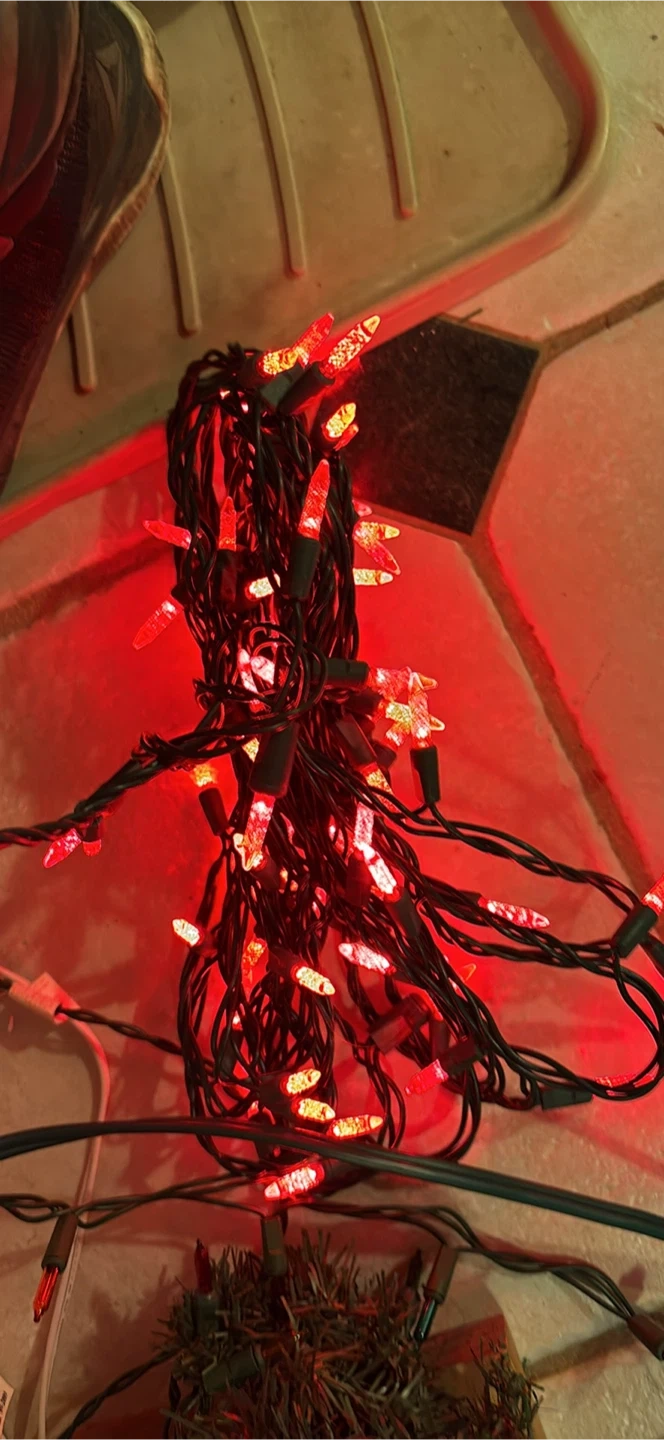 Selling a set of Christmas string lights in red. They're perfect for adding a festive touch to your home this holiday season! They are in good condition and ready to brighten up your space.