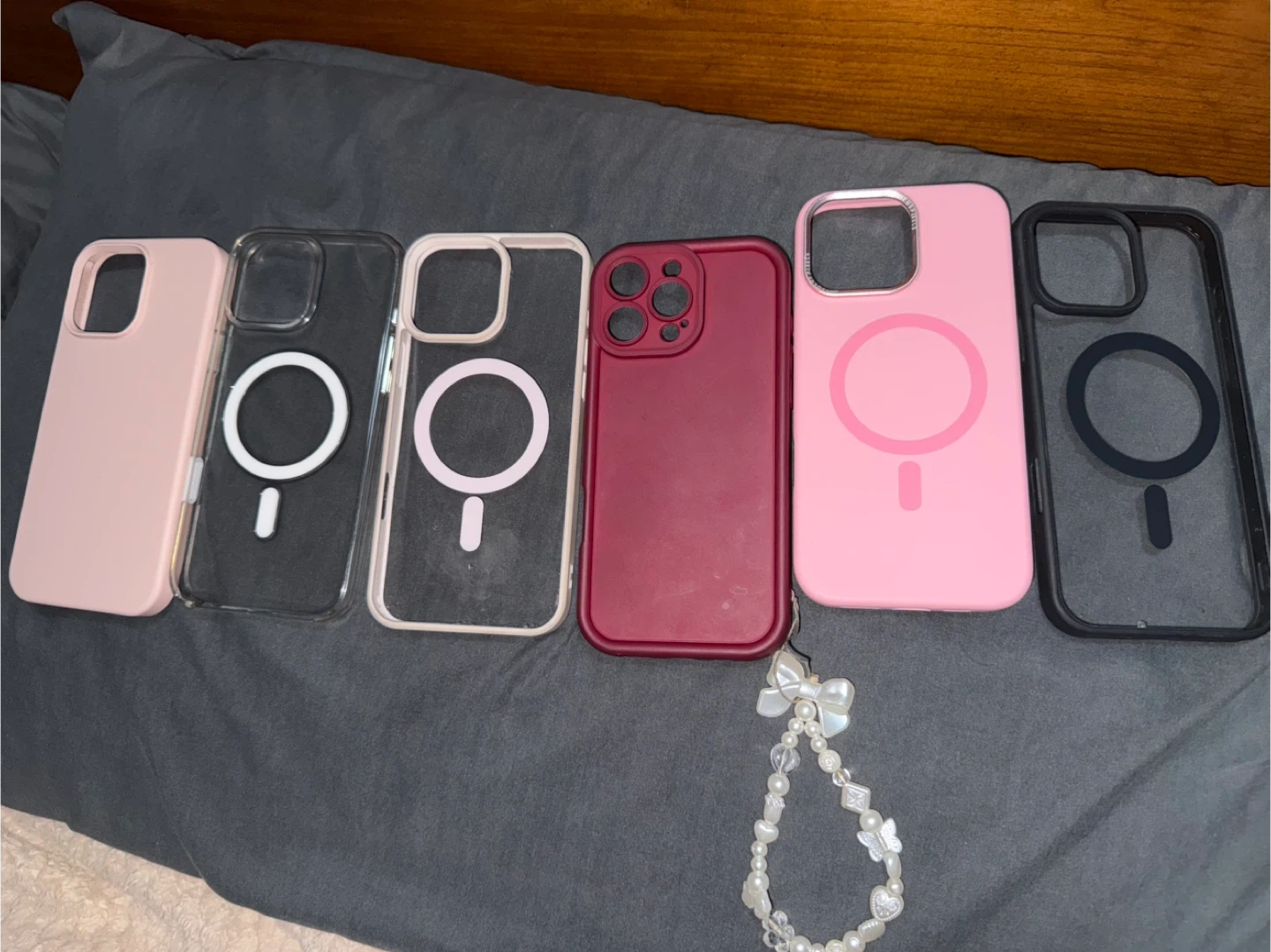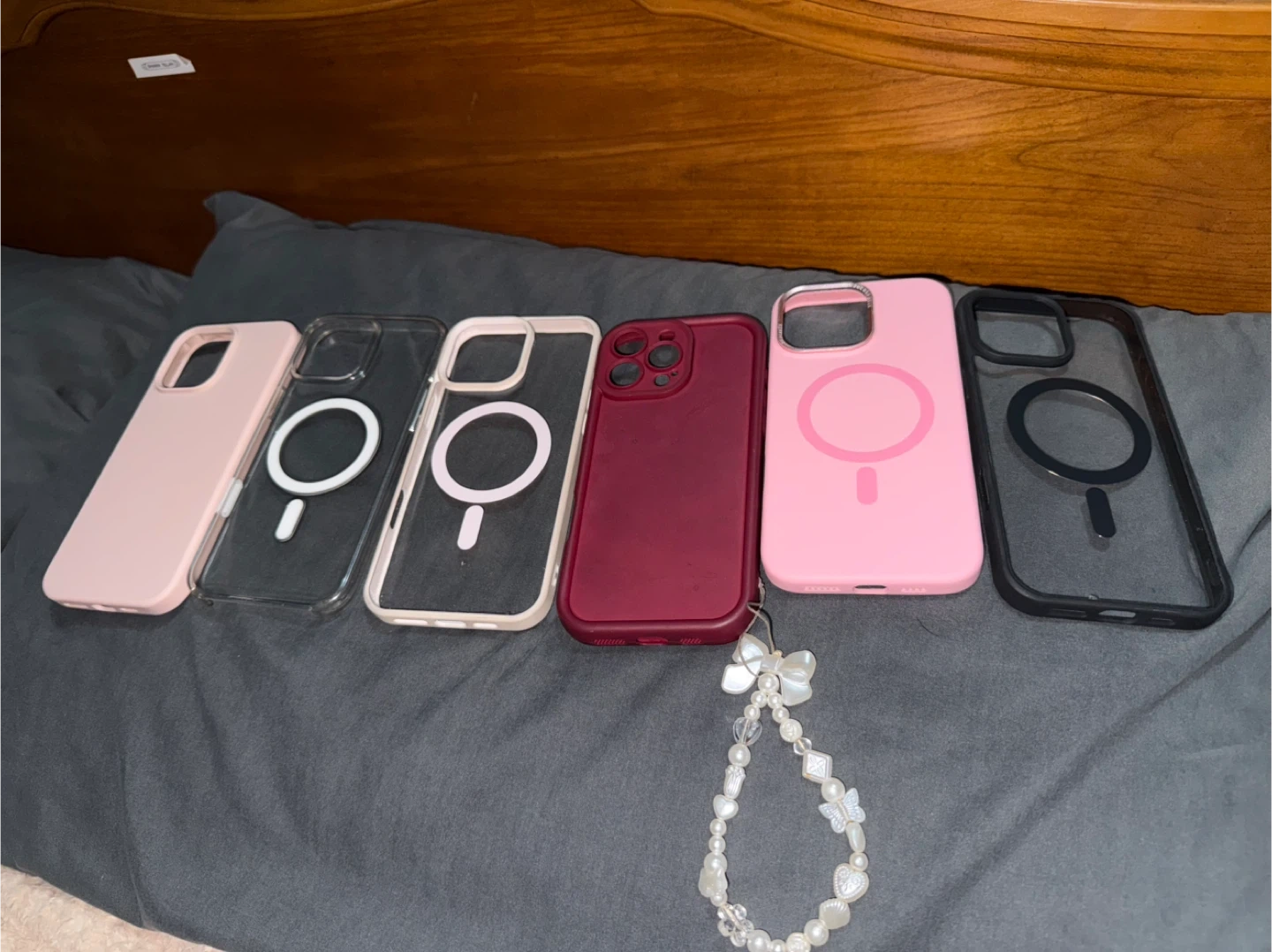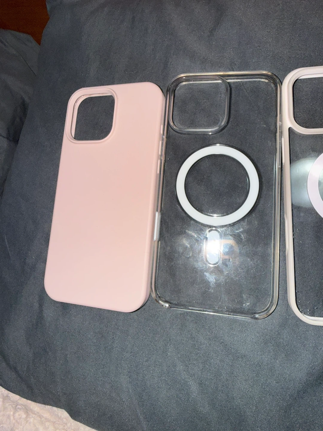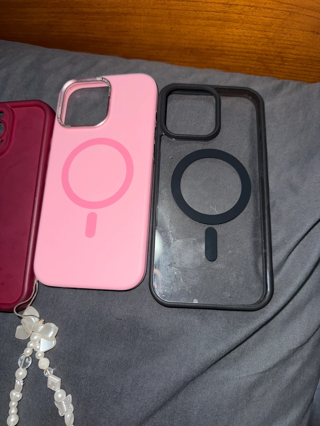 Selling a variety of iPhone cases, all with MagSafe compatibility! There are a few different colours to choose from, including pink, clear, and burgundy. They're in great condition and ready for a new phone! Clear one is $30 take all for $60 $8