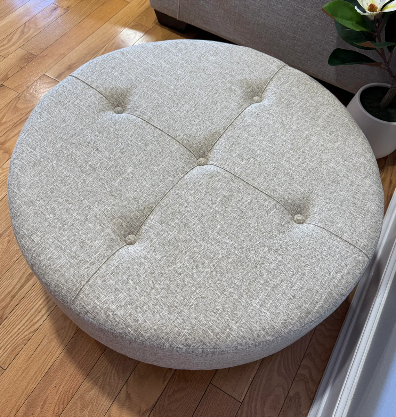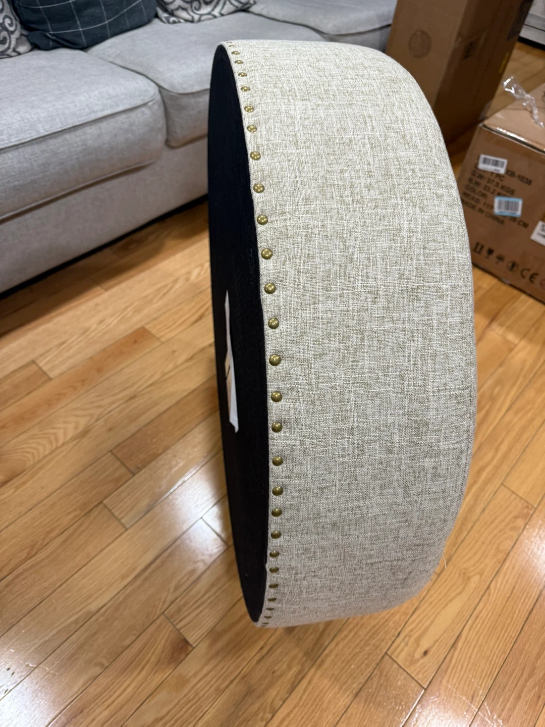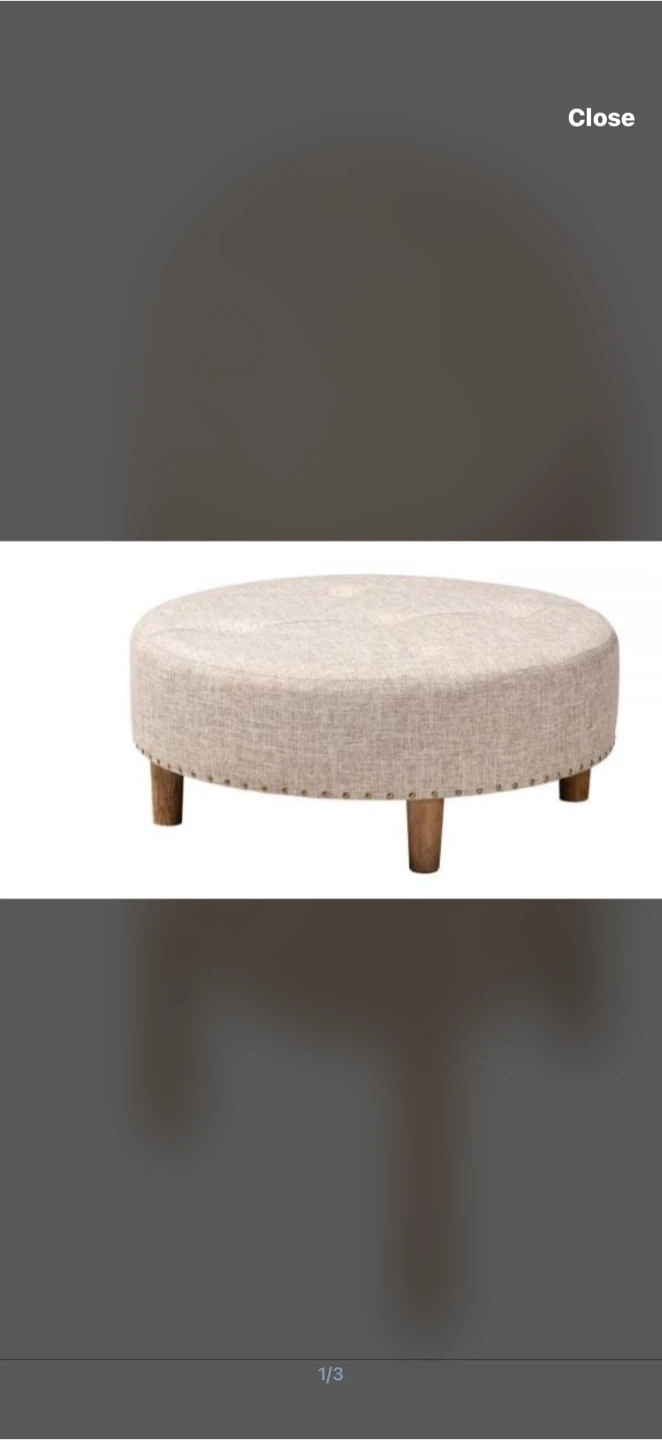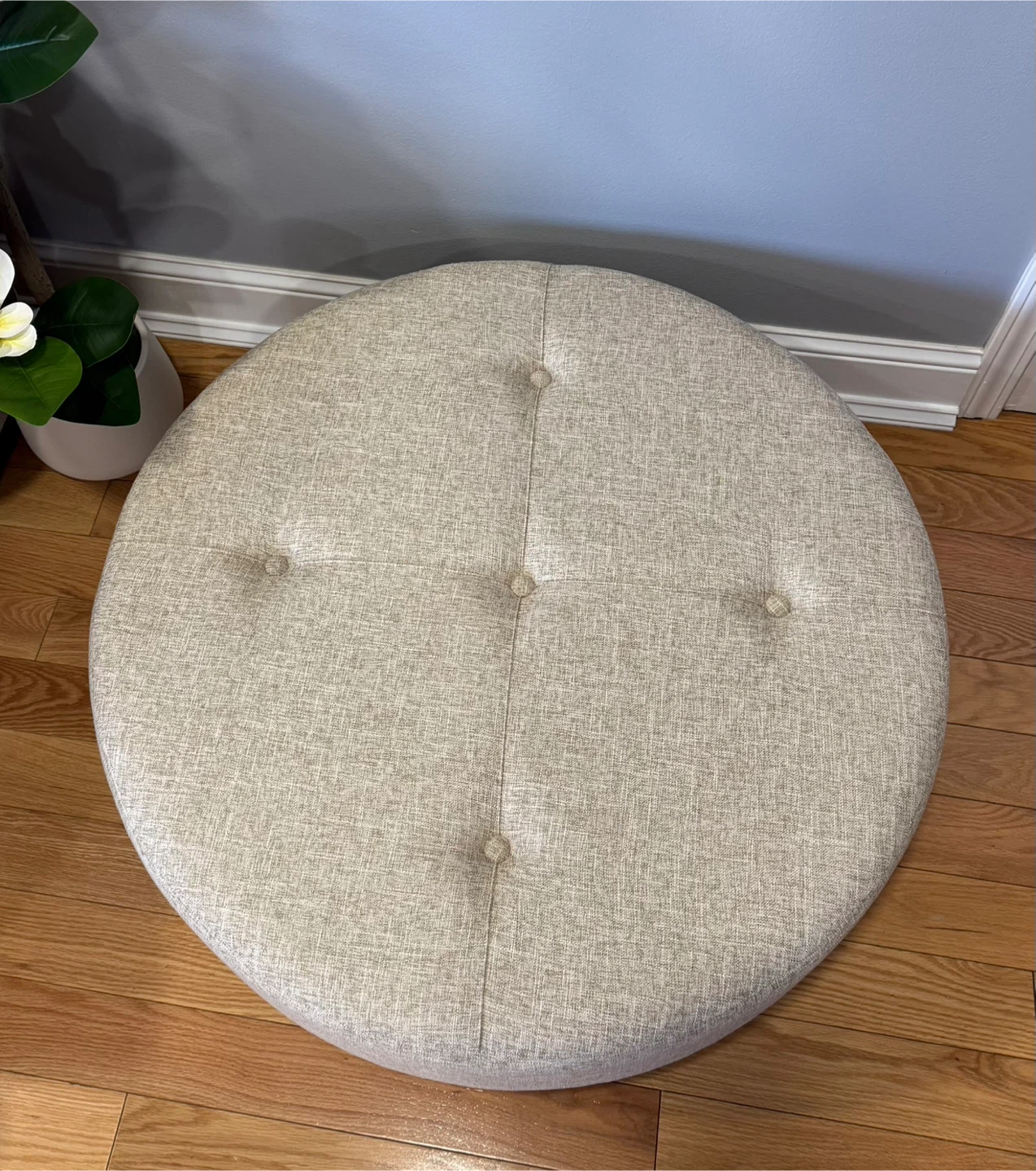 Selling a Baxton Studio round ottoman in beige. It's in excellent condition and comes with the original box! The ottoman is one size and measures 31.50" in diameter and 13.40" in height. It was originally bought for $154.73