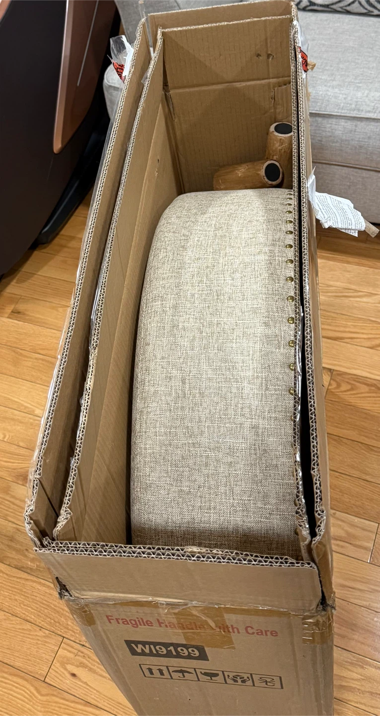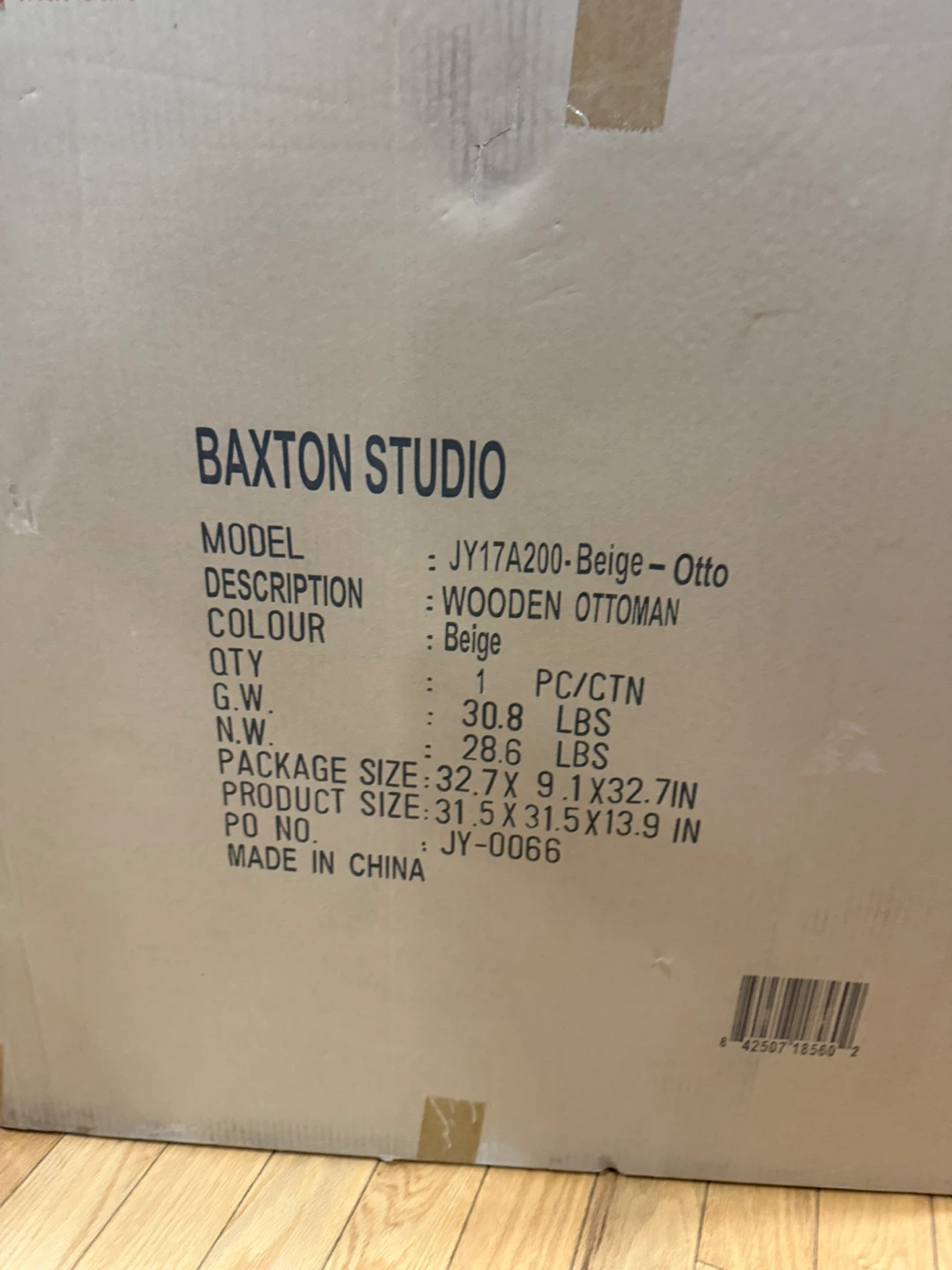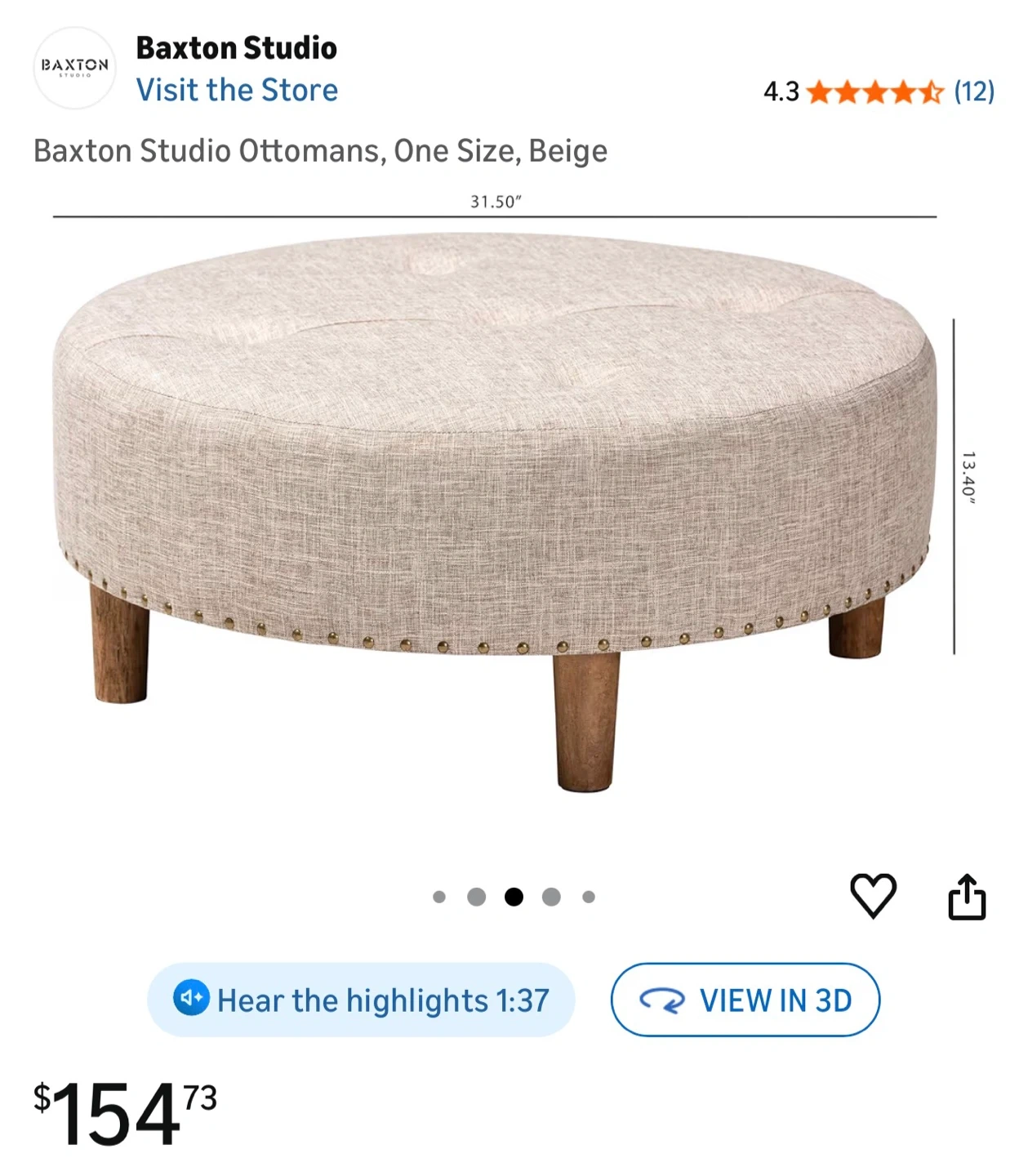 Selling a Baxton Studio round ottoman in beige. It's in excellent condition and comes with the original box! The ottoman is one size and measures 31.50" in diameter and 13.40" in height. It was originally bought for $154.73